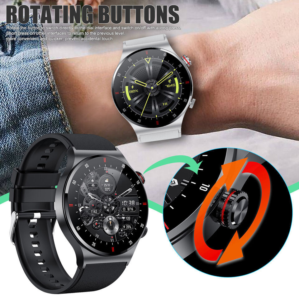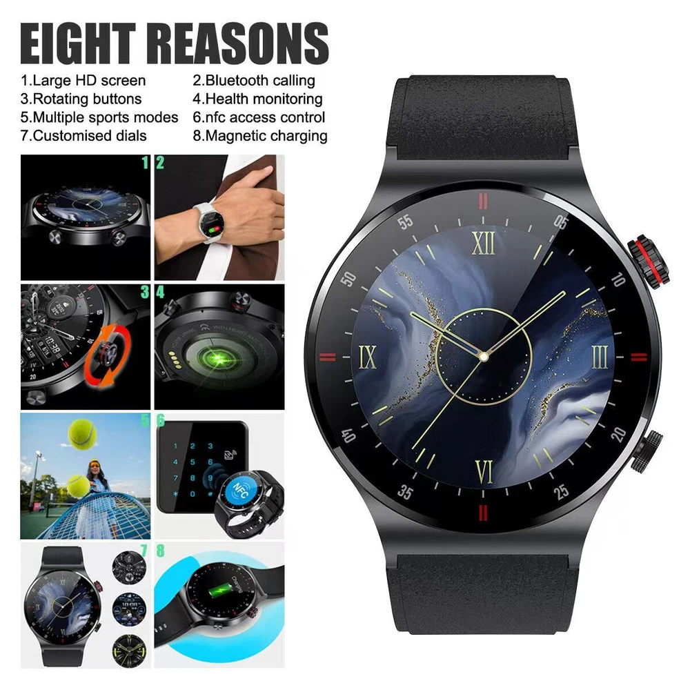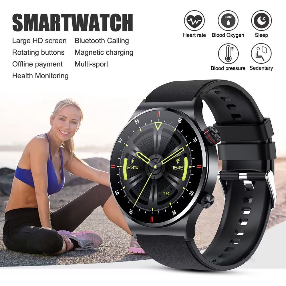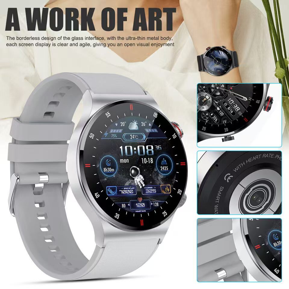 New Smart Watch For Men/Women Waterproof Smartwatch Bluetooth iPhone Samsung QW33 smart watch Attributes: Black, Silver Gray Gross weight: 130g Wristband material: environmentally friendly silicone Packing list: watch, manual, charging cable Features: HD Touch Screen And Custom Dial: 1.3inch HD color display with 240*240 resolution provides you with a high quality touch and visual experience. The brightness is adjustable, so you can easily read information in sunlight or in the dark. You can download the dial or customize the dial and set different styles according to different life scenarios to show your unique personality. Smart Bluetooth Call And SMS Alerts: All messages and notifications are displayed on the watch and alert you via vibration, you can choose to answer or reject calls on the watch, you can also receive messages from Facebook, Twitter, Whatsapp, SMS, notification software (such as INS), so you won't miss important work phone messages. Healthy Sleep And Heart Rate Monitoring: This stylish smartwatch monitors heart rate, blood pressure, blood oxygen, deep and light sleep status, analyzes sleep and helps you better understand your health. Rationalize your lifestyle. Warm tips: (This watch is not a medical device, measuring health data for reference only). MultiFunctional Smart Notification: Sedentary reminder, alarm setting, remote control photo, weather display, stopwatch, music control, cell phone search, hand illuminated screen, female physiological cycle, step calculation, distance, calorie, heart rate/blood pressure/blood pressure/sleep monitoring, brightness adjustment and other functions. Support uploading picture customization, binding payment account can realize payment function, support offline sweeping code payment. Multiple Sports Modes & IP67 Waterproof: 10 sports modes can help you better understand specific activity data. Sports modes include running, soccer, badminton, basketball, jump rope, swimming, climbing, cycling, running, walking, table tennis, etc. Easy to operate and switch, and immediately displayed on the screen to record. Adopt IP67 waterproof setting standard to avoid daily hand washing, sweat, rain and other splashes (Note: not for bathing, diving, etc.). Support Devices And Long Battery Life: Our smartwatch is compatible with iOS 10.0 and above, Android 5.0 and above smartphones. Equipped with 260mAh large capacity battery, magnetic charging time is about 2 hours, and it can standby for about 15 days after fully charged for 5-7 days. Support Languages: Simplified Chinese, English, Italian, Japanese, German, Spanish, French, Russian, Portuguese, Polish, Turkish, Greek, Hebrew, Czech, Hungarian, Arabic.