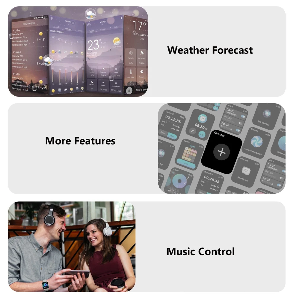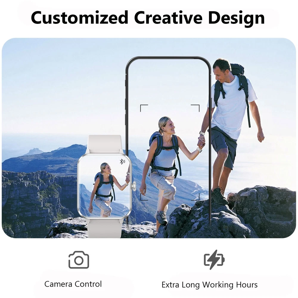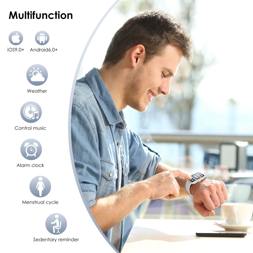 Smart Watch For Women/Men Waterproof Smartwatch Bluetooth iPhone Samsung Android 【Bluetooth Call and Voice Assistant】 Smart Watch Has a Built-in Microphone and Hd Speaker, Adopt Bluetooth Version 5.3 for Faster Connectivity. so You Can Make and Receive Calls Directly from This Smart Watch for Men. You Can Also Use the Built-in Voice Assistant to Ask Questions, Control Music Playback, Check the Weather, Set Alarms and Timers, Etc. When Your Phone Receives a Call or Message (Such As Whatsapp, Facebook, Instagram, Etc.), the Smartwatch Issues a Real-time Notification. 【1.85'' Hd Touch Screen and Diy Dial】 Smart Watches for Men Are Equipped with a 1.85-Inch Extra Hd Lcd and a Tft High-resolution Color Display. Superior Picture Quality and Touch Sensitivity Bring You Crystal-clear Visuals like Never Before. the Smart Watch Has More than 100 Unique Watch Faces to Choose from. You Can Also Customize Your Favorite Pictures As Watch Faces on the ‘’Da Fit‘’ App and Even Upload Your Photos, Such As Selfies or Pictures of Your Pets, to Create a Truly Personalized Look with Endless Possibilities. 【24/7 Health Monitor】 the Iowodo Smartwatch Has a Built-in Optical Tracking Sensor That Automatically Monitors Health Levels for Heart Rate in Real-time 24/7. It Can Also Accurately Track Your Sleep and Detect Blood Oxygen Saturation and Stress Levels. the "Da Fit" App Even Offers a Detailed Sleep Quality Analysis Report (Light/Deep/Awake Sleep Stage), and You Can View Further Health Data to Help You Analyze Your Health Status and Make Appropriate Adjustments in Good Time Towards a Healthier Lifestyle. (*Note: This Watch Cannot Be Used As a Medical Diagnostic Tool.) 【Battery Life】 the Smart Watch Has a Built-in 350 Mah Rechargeable Battery That Can Be Fully Charged in Just 2.5 Hours and Minimizes Power Consumption. Under Normal Use, the Battery Life Is up to 5-7 Days(Depending on Actual Use). in Standby Mode, It Can Be Used Continuously for up to 25 Days. with Our Smart Watches for Men, You Can Say Goodbye to Battery Anxiety. 【100+ Sports Modes】 the Fitness Watch with More than 100 Sports Modes, This Fitness Tracker Supports Treadmill, Walking, Outdoor Training, Running, Cycling, Climbing, Yoga, Skiing, Football, and More. It Precisely Tracks Your Daily Data Such As Steps, Time, Distance, and Calories, and Connects to the Gps on Your Phone to Record All Your Training Routes and Fitness Using the "Da Fit" App to Further Motivate Yourself to Complete Your Exercise Plan. It's an Ip68 Waterproof Device That Can Meet Your Daily Needs. (*Note: Not for Sauna, Hot Water, Swimming, Diving) 【Broad Compatibility】 Works Seamlessly with Ios or Android Smartphones. Compatible with Ios 9.0 or Above, Android 6.0 or Above (Not Suitable for Pcs or Tablets). Our Smart Watch Has an"Fsc-certified Case and Bracelet". 【More Efficient Life and 2 Straps】 the Fitness Watch Has Many Built-in Functions, Including Smart Notifications, Music Control, Camera Control, Weather Forecast, Sedentary Reminders, Alarm Clock, Stopwatch, Timer, Etc. Lift Your Wrist and Read All the Incoming Calls, Text Messages, and Messages Sent to the Smartwatch Screen Directly. in Addition, Equipped with 2 Comfortable and Skin-friendly Wristbands (Silicone Strap and Nylon Strap), the Length Can Be Adjusted Freely. Users with Sensitive Skin Can Use the Nylon Strap, Which Directly Helps You Solve Skin Sensitivity Problems, and Smart Watches for Men to Help You Exercise Scientifically. 【24-Hour After-sales Service】 We Provide a Long After-sales Cycle and Complete Customer Service. If You Have Any Problems When Using the Smart Watch, Please Contact Us Immediately. We Will Reply to You Within 24 Hours and Help You Solve the Problem As Soon As Possible! 🎁 Fantastic Gift for Your Family and Friends💝 Packing List: 1 x Smart watch 1 x Replacement strap 1 x Charging cable 1 x User Manual Operation guidance: Strap Material Silicone Size As shown in the figure MPN NOT SPECIFIED Case Color Gray Manufacturer Warranty 1 Year Network Bluetooth Features Blood Oxygen Sensor, Bluetooth Enabled, Caller ID, Fitness Tracker, Heart Rate Monitor, Sleep Monitor, Touchscreen, Waterproof, Water-Resistant Case Size 22MM Operating System Android Wear Storage Capacity 1 GB Case Material Aluminum APP Name Da fit Compatible With Android 6.0 & iOS9.0 above Screen Size 1.85 Inches Material Silicone Brand Blackview Series Military Smart Watch Type Smart Watch Battery Capacity 350mAh Band Color Gray Band Material Silicone Compatible Phone Models For IOS, Android Design/Finish HD Touch Screen Model Military Smart Watches Country/Region of Manufacture United States Compatible Operating System iOS - Apple, Android Connectivity Technology Bluetooth 5.0