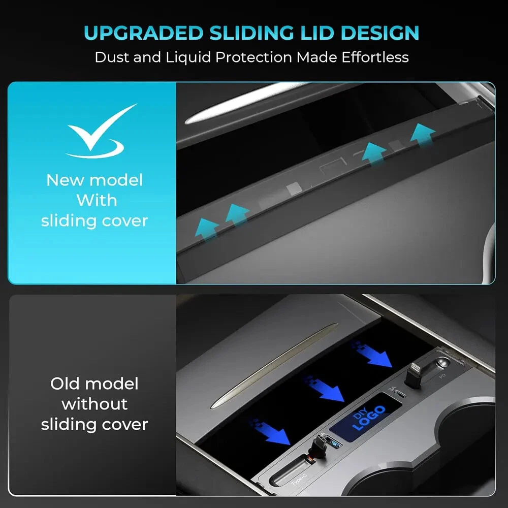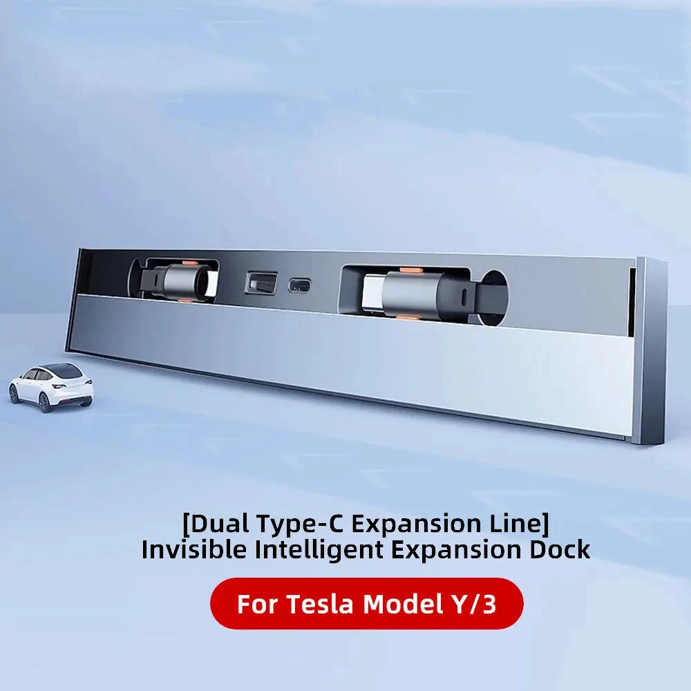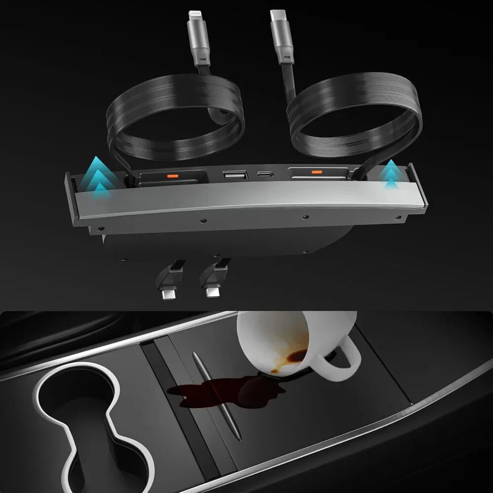 USB Hub for Tesla Fast Charger Model Y/3 Waterproof Multi Port Retractable Docking Station Model Y 2021-2024 Model 3 2021-2023 【Perfect Fit for Tesla】Custom designed for the central control interface of Tesla model 3 model Y 2021-2023. Perfect design, which does not affect the use of sliding covers.The tesla accessories are fully integrated with the center console. 【4 devices charging at the same time】Tesla model y model 3 accessories 2024 quick charger has two charging cables and 2 charging ports, it can be used for Type C USB, in-car wireless charging is up to four times faster, if the retractable charging cable can't be charged, please check whether the two power ports are plugged in tightly. 【5 Seconds Simple Installation】The Tesla usb hub is very easy to install, no need to disassemble or damage the centre console, just a simple operation can be completed, and it can be perfectly installed on the centre USB console of Tesla y or 3 models. 【4-Port Fast Charging】Powers up fast: 27W PD, 27W Type-C, 2.4A USB, and 3A Type-C. Rapidly fuels phones, tablets, earbuds, game controllers, and more. 【Retractable Charging Cables】This car usb hub for tesla central console is unique sliding cover dustproof designed, has 2 retractable charging cables, which can be stretched to 32 inches and automatically retracte.