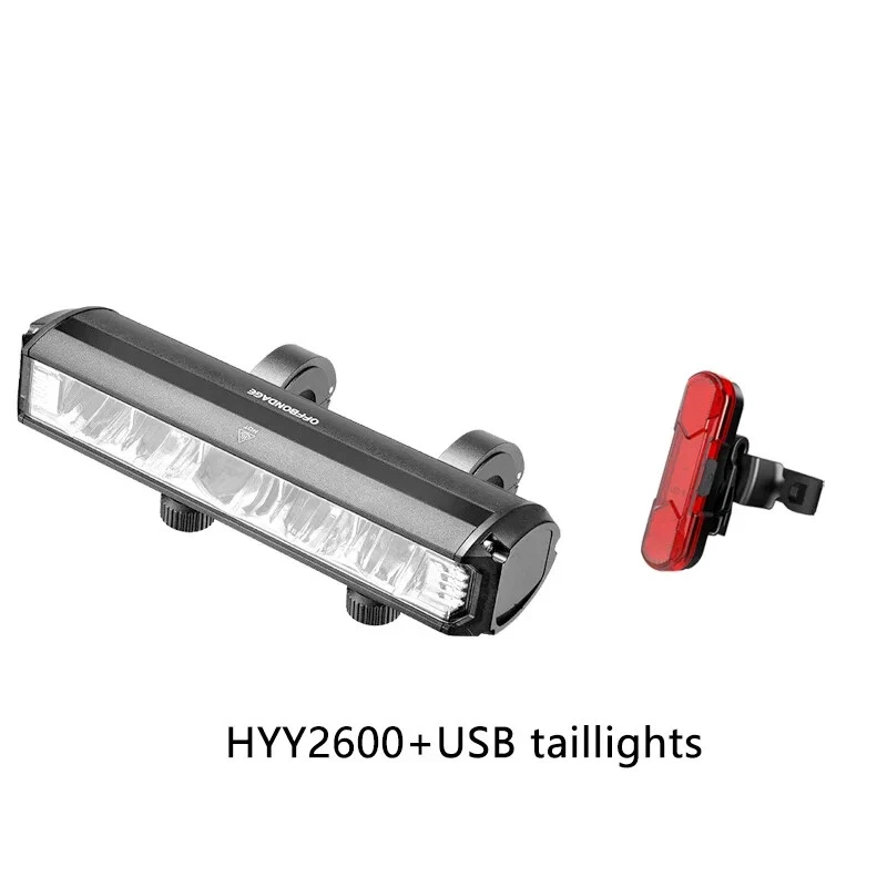 PRDUCT DETAIL Model: HYY900-2000mAh Material: Aluminum Plastic Shell Mode:5 Modes Click to open: near light - far light - far and near full light - flicker-Daylight mode Long press to open: daytime running light Waterproof: IPX-5 Lumen: Max 900 Lumen Range: About 200M Battery: About 2000 mAh Charging Time: About 3 hrs Working time: 2-3.5h Power bank: NO Model: HYY1400-4000mAh Material: Aluminum Plastic Shell Mode:5 Modes Click to open: Near light - High beam bright - Far and Near full light - Flashing -Daylight mode Waterproof: IPX-5 Lumen: Max 1400 Lumen Range: About 150-300M Battery: About 4000 mAh Charging Time: About 4.5 hrs Working time: 2.5-4.5h Power bank: NO Model: HYY2600-8000mAh Material: Aluminum Plastic Shell Mode:4 Modes,Near light - High beam bright - Far and Near full light - Flashing Waterproof: IPX-5 Lumen: Max 2600Lumen Range: About 200-500M Battery: About 8000 mAh Charging Time: About 9 hrs Working time: 2.5-7.5h Power bank: YES Product Features: 1. High beam/low beam. Anti-glare 2. Aluminum alloy , good heat dissipation 3. Durable/Anti-Fall, Long Range 4. Built-in battery.USB Rechargeable High lighting bicycle headlights 1400lumens,4000 mAh,five kinds of light patterns Product detail Material: ABS+PC Lamp beads: COB lamp beads Mode: 6 modes Endurance time: 10-100h Weight: about 22g Water resistance: IPX6 Battery: 3.7V/260mAh polymer Warranty: 1 year Product feature Riding safety brake intelligent induction Freely switch four modes ABS+PC shell PC lens + COB lamp beads IPX6 waterproof Type-c rechargeable 260mAh battery Weighs only 22g Smart Brake Tail Light #Four modes|Intelligent induction|Type-c charging#