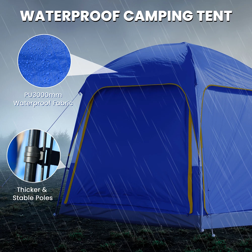 Advanced Weather Protection: Crafted from 150T Oxford fabric with a PU3000mm coating, our SUV tent can avoid rainwater infiltration , keeping you dry and comfortable during your camping adventures. Ideal for all-season camping, this tent offers reliable protection against unpredictable weather conditions, making it a must-have for outdoor enthusiasts Spacious Interior Design : With dimensions of 98.4 inch x 98.4 inch x 87inch , our SUV tent provides ample room for 4-6 campers, offering a comfortable and cozy space to relax and unwind after a day of outdoor activities. Featuring poles and clear instructions, the tent is easy to set up, even for beginners, ensuring a hassle-free camping experience Optimal Ventilation and Storage: Enjoy excellent airflow and ventilation with large doors, top mesh skylight, and mesh windows, 2 Porchs providing fresh air circulation and minimizing condensation inside the tent. Additionally, the tent includes mesh pocket for convenient storage of essentials, keeping your camping gear organized and within reach,Features full mesh skylight and large mesh windows for 360° airflow, bug-free ventilation, and unobstructed views of the stars at night. Dual Doors with Awning Function & Extra One Pole Set : The dual-door design offers easy access, and includes an extra one pole set to prop up either door, creating an awning or sunshade for added outdoor relaxing space. (Note: This extra pole set is provided as a gift and can be used for either door. Durable Construction: Built to withstand the rigors of outdoor use, our SUV tent features sturdy materials and robust construction, ensuring long-lasting durability and performance. The waterproof PU3000mm coating and taped seams provide added protection against rainwater, while the high-quality fabric resists wear and tear for years of reliable use Versatile All-Season Use: Whether you're camping in the heat of summer or braving the chill of winter, our SUV tent is designed to excel in all seasons. Its durable construction and superior weather resistance make it the perfect choice for any outdoor adventure, ensuring comfort and protection no matter the weather conditions Adjustable Connection, Fits Most SUVs & Trucks: Our tailgate tent features an adjustable rear connection with elastic bands and a drawstring design, fitting most cars with a rear circumference up to 250 inches. Compatible with popular models like Toyota Highlander/Sequoia, Honda CR-V, Ford Explorer, Jeep Grand Cherokee, Tesla Model Y and more.
