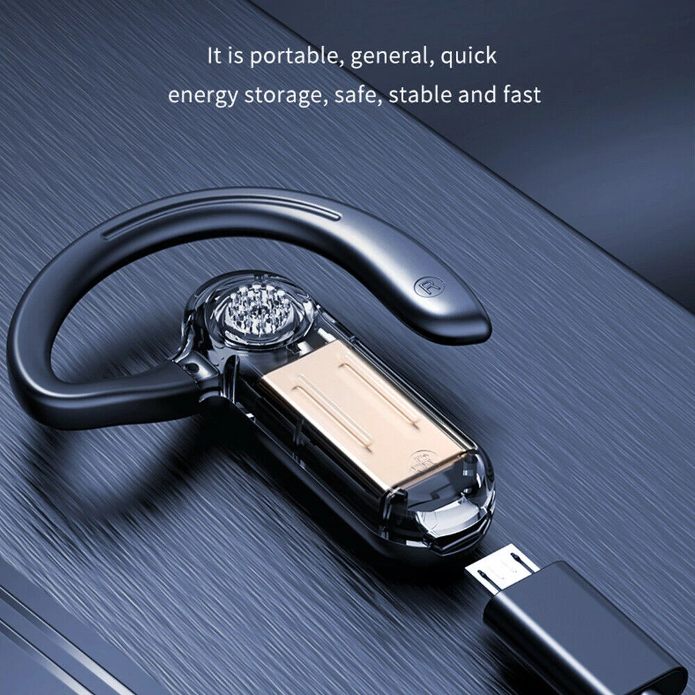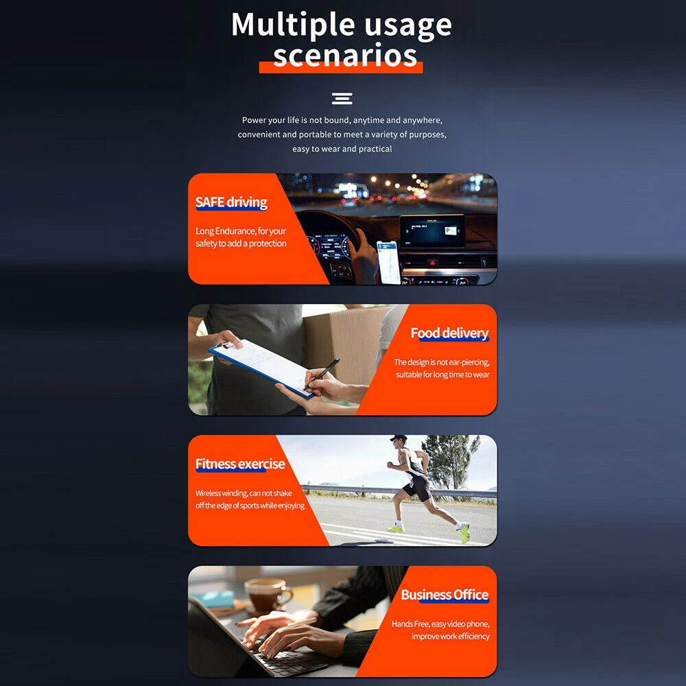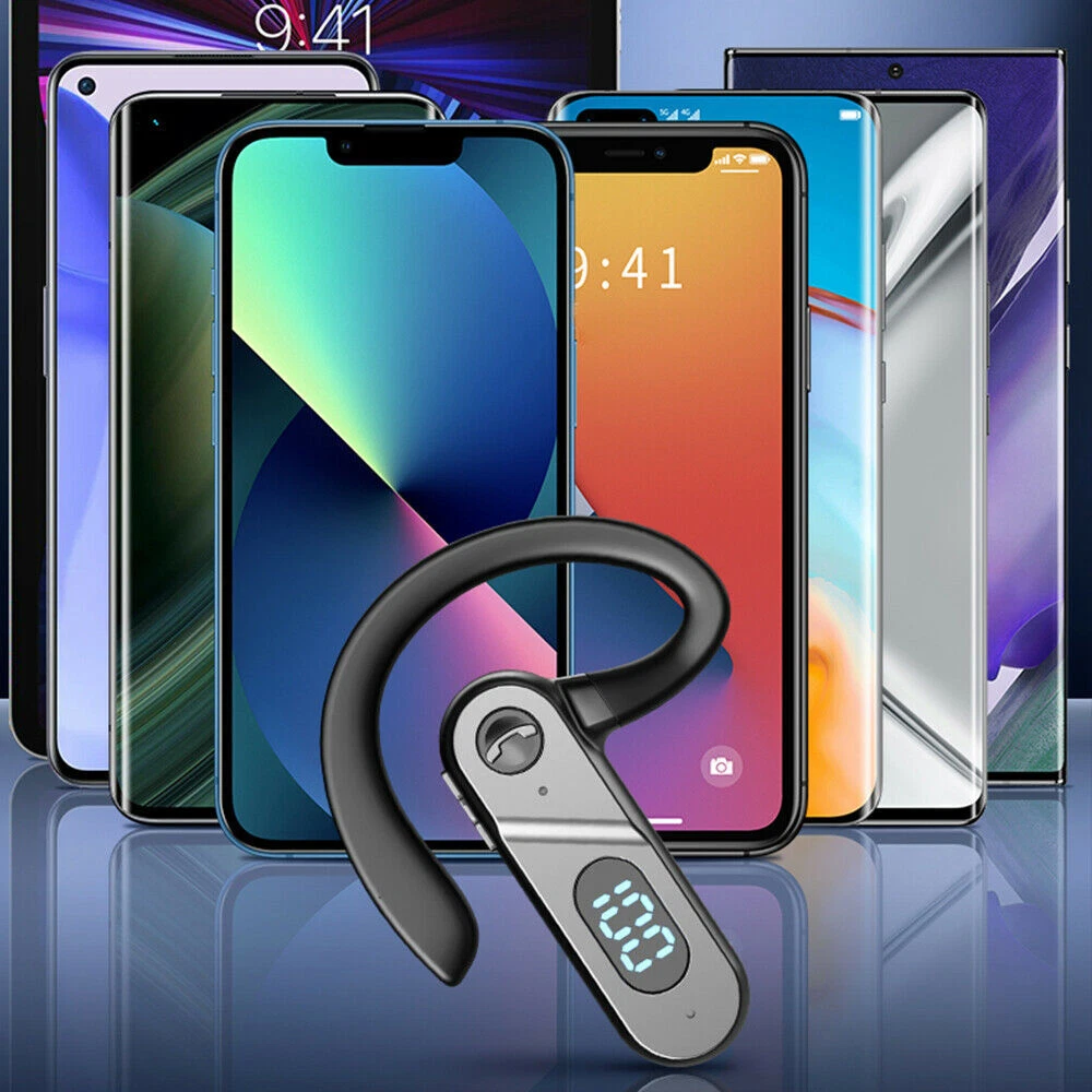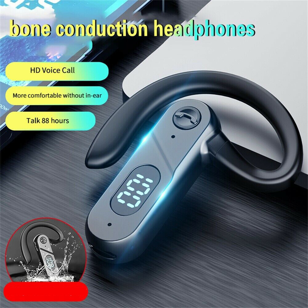 Product Description Features: True wireless headset with Bluetooth 5.2 chip, faster transmission and more stable signal. Bone conduction concept design with high definition LED power display. With intelligent noise reduction technology, you can enjoy HiFi sound effect music or have HD phone talking even in a noisy environment. Ergonomic design with silicone gel earhook, it won't fall off easily and more comfortable without earplugs. Low power consumption, long battery life, long standby time is available after fully charged. The headset could be used to answer/reject calling, skip/play/pause songs, and activate voice assistant, such as for Siri and for android voice assistant. With intelligent voice reminder, helping you to know the real-time status of your headset. IPX grade waterproof level, no need to worry about getting wet by rain and sweat. Best companion for safe driving, fitnexx exercise, courier delivery, business office, etc. Fully compatibility with for iPhone 13 Pro Max/13 Pro/13/13 Mini/12 Pro Max/12 Pro/12/12 Mini/X/XS/XS Max/XR/8/8 Plus/7/6, for Samsung Galaxy S22/S21/S20/S10/S10 Plus/Note 20/Note 10 and other Bluetooth electronic devices. Specifications: Bluetooth Version: Bluetooth 5.2 Transmission Distance: 10meters Bluetooth Protocol: HFP/HSP/A2DP/AVRCP Waterproof Level: IPX5 Earbuds Battery Capacity: 130mAh Charging Time: About 1-2 hours Playtime: About 15 hours Function: Music play/pause, call answering noise reduction, for IOS power display, voice prompt. Color: Black Package Includes: 1 x Bluetooth Headset 1 x Charging Cable 1 x User Manual If you have any doubts or uncertainty about this item, contact us with no hesitation, we are always here and will solve your problems. Thanks and wish you a nice day! About Us We dedicated to provide excellent products and services for all customers on ebay. hope we all can have a nice experiences on eBay. Payment We accept all verified payment through PAYPAL payment. Shipping Usually, Item will be shipped within 1-2 working day after full payment is received. Normally, you will receive the item in 5-7 days. Please contact us if you don’t receive the items after 10 working days after the payment If you have any questions about shipping, please feel free to contact us. Returns Always believe we can solve problems by communication if it comes to any problems about products or any others. If it comes to a return, the products must be intact and as original when you received, and should be within 30 days after you received it. Contact Us Work time: 9:00 AM to 18:00 PM Beijing Time You can contact us at anytime you want, we will reply all messages at the first time. powered by