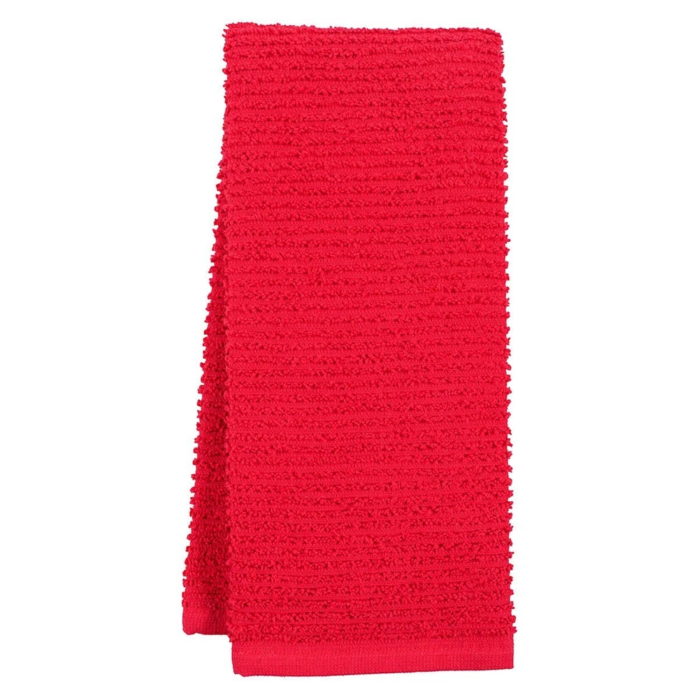 Add some color to your kitchen Keep your kitchen clean and stylish with the Wave Kitchen Towel. Made of soft cotton, this towel is perfect for drying dishes and wiping up spills. The Wave Kitchen Towel will add a pop of color to any kitchen decor. Its absorbent fabric ensures quick and thorough drying, making it a practical and fashionable choice. Designed for everyday use. Soft and absorbent cotton. Ideal for drying dishes and wiping up spills. Bright red color adds a touch of style to your kitchen. Measures 15in. L × 25in. W × 0.3in. H. Set 6 pcs Dimensions 15.0" L x 0.3" H x 25.0" W Weight 0.4 lbs. Color red Material Cotton