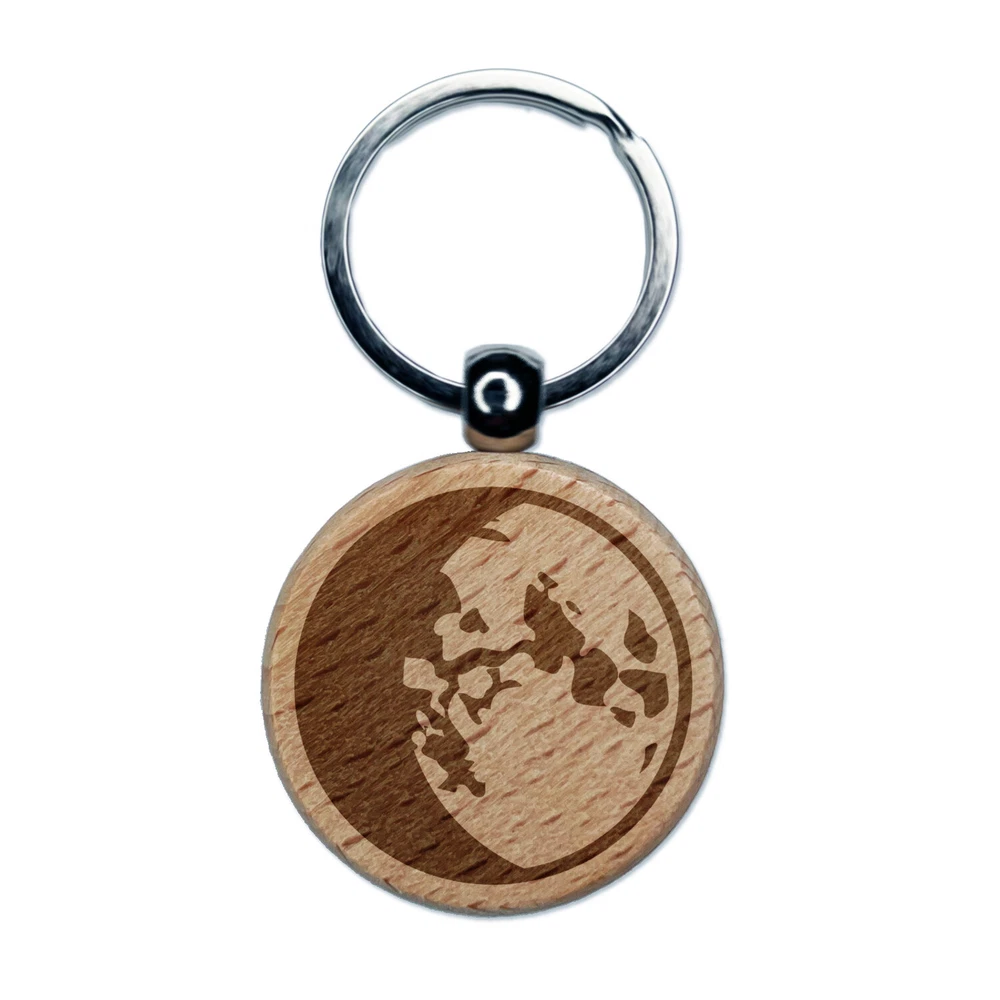 Waxing Gibbous Moon Phase Engraved Wood Round Keychain Tag Charm