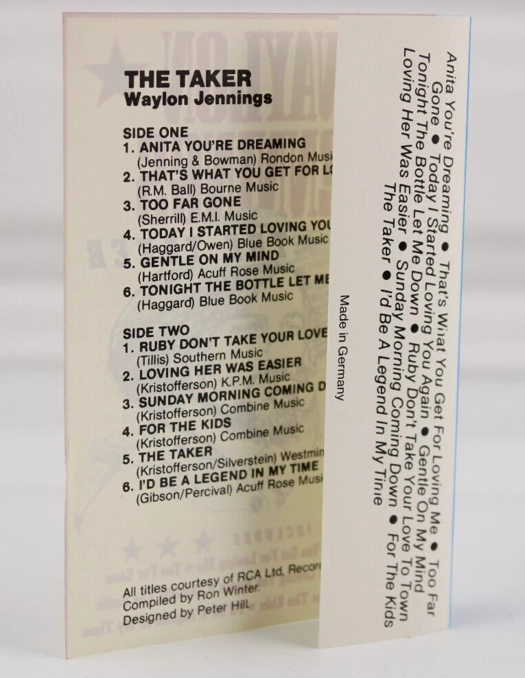 Waylon Jennings - The Taker Cassette Tape Germany Outlaw Country 1984 Tested WAYLON JENNINGS - THE TAKER VINTAGE CASSETTE TAPE MADE IN GERMANY 1984 SOME OF HIS GREATEST HITS ONE OF THE ORIGINAL OUTLAW COUNTRY STARS GREAT COLLECTORS' ITEMS TESTED WORKS GREAT IN OVERALL GREAT CONDITION GREAT ADDITION TO YOUR HISTORIC COUNTRY MUSIC COLLECTION COUNTRY MUSIC LEGEND ✨✨✨ THE CASSETTE IS IN VERY GOOD CONDITION, IT WAS TESTED AND WORKS GREAT THE JEWEL CASE IS ALSO IN VERY GOOD CONDITION THE INLAY IS VERY GOOD MINOR SIGNS OF AGING PLEASE SEE PICS ✨✨✨✨✨✨✨✨✨✨✨ The VinKris Collection is committed to delivering a great experience! We will ship to you with the greatest of care All items are shipped in sturdy boxes We use packing materials appropriate for the product to help ensure safe delivery Shipments to the United States and Protectorates are handled via USPS International shipments will ship via Ebay's International Shipping Program All packages are shipped within 1 business day of payment We ship daily Monday through Saturday Worry free purchases, we stand behind everything we sell with free 30 day returns We have thousands of happy customers and our goal is 100% customer satisfaction We are happy to answer any questions