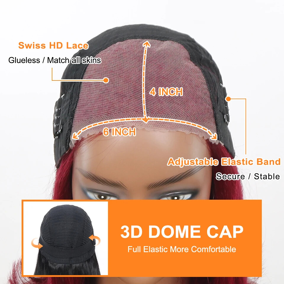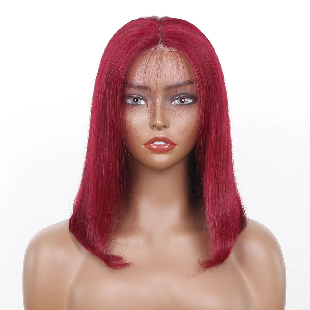 Specifications: Material: 100% Human Hair Weight: 135g-175g length: 8-16 Inch Texture: Straight hair Hair Tape: Brazilian hair,Burmese hair,Indian hair,Peruvian hair Hair Style: 6x4 Glueless Human hair Bob lace wig Hair color: 99J Lace Color:Transparent lace Features: l No Chemical,No Shedding,No Tangle,No Smell . Shiny,Smooth,Silky Hair l Double Weft , Factory D irect S ales l Cap: Average cap size22.5inch,4combs in the cap to fix easily. l Lace Part: 6x4 Glueless Lace Wig Pack Content: 1 * wig+1*wig cap