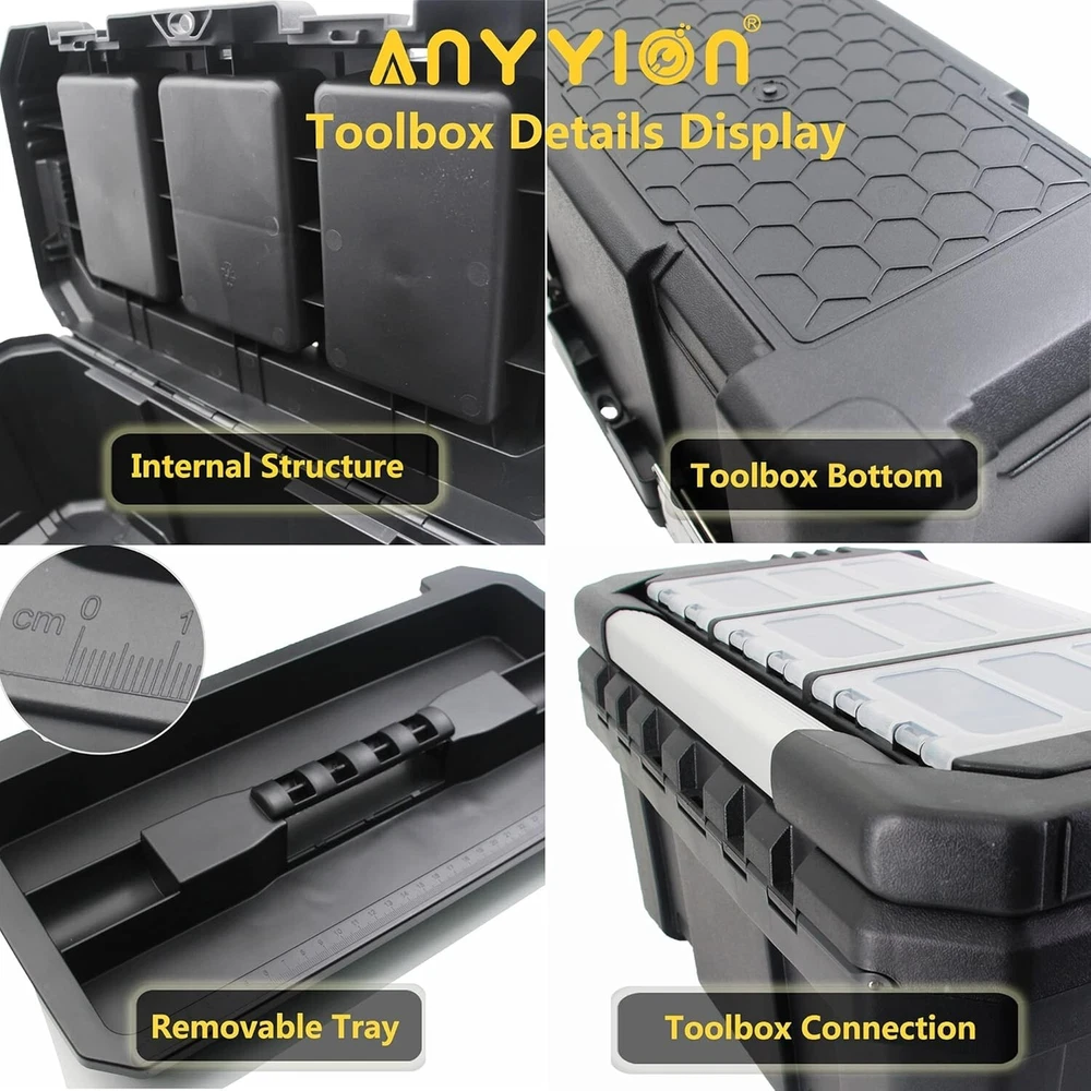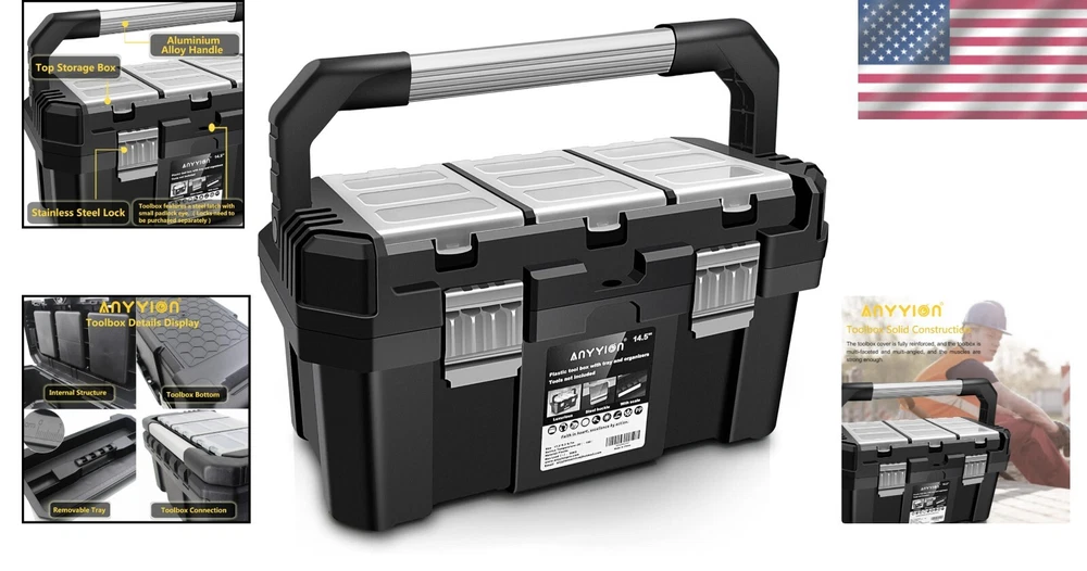 Type: Tool Box Item Diameter: 14 Inch Item Length: Tool Box with Removable Tray Capacity: 30 lb Item Width: Tool Box with Removable Tray Size: Medium Features: Lockable, Removable Tray, Sturdy, Durable, Large Capacity, Non-Slip Handle, Internal Organizer Tray, Bottom Compartment, Security Latch Color: 14.5in Material: Plastic Batteries Required?: No Included Components: No UPC: Does not apply Item Weight: 3 pounds Number of Items: 1 Maximum Weight Recommendation: 30 Pounds Brand: Unbranded Product Dimensions: 14.5"l X 7.8"w X 7.8"h Number of Drawers: 0 Item Height: Tool Box with Removable Tray Water Resistance Level: Not Water Resistant gtin13: Does not apply Batteries Included?: No
