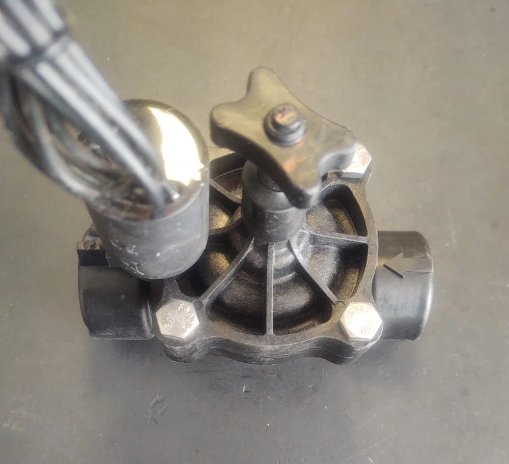 Weathermatic Black Bullet 1" In-Line Electric Valve w/ Solenoid w/ flow control w/ manual bleed lever beneath solenoid Black Bullet Max Valve With Flow Control 24VAC 1" Valve Material: Plastic/Nylon Reverse flow design for water conservation in the event of failure, and it has S24B high-efficiency solenoid for positive opening at high pressures; includes stainless steel actuator and brass threads for long life. High-strength glass-filled body and cover with ¼” stainless steel cover bolts and mating brass body inserts. Please see pictures for reference! Feel Free to Communicate, I answer all messages within 24 hours Thank you for shopping my Colorado Small Business! Sprinkler Irrigation