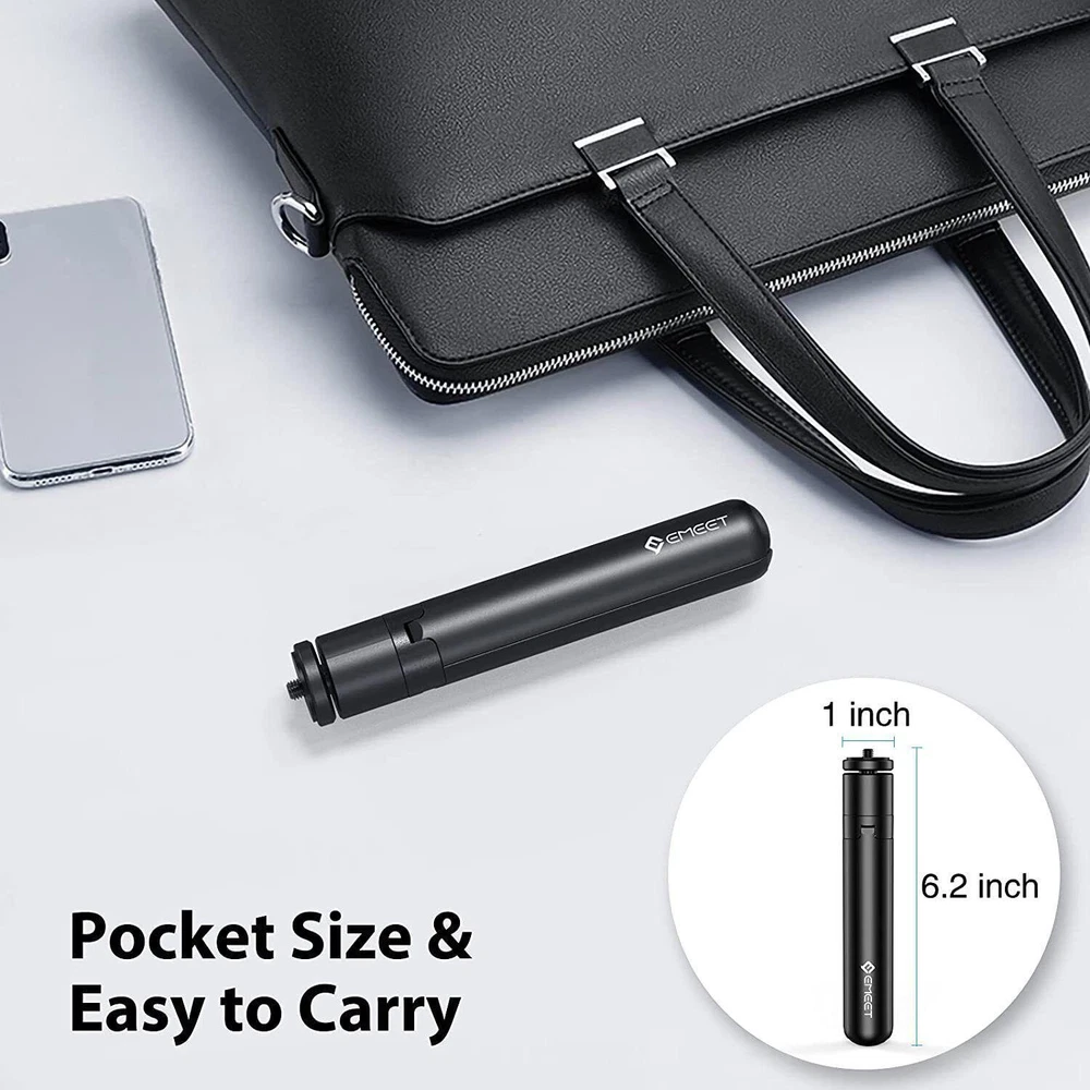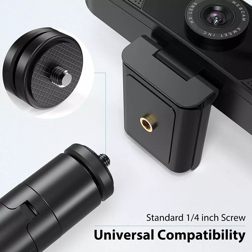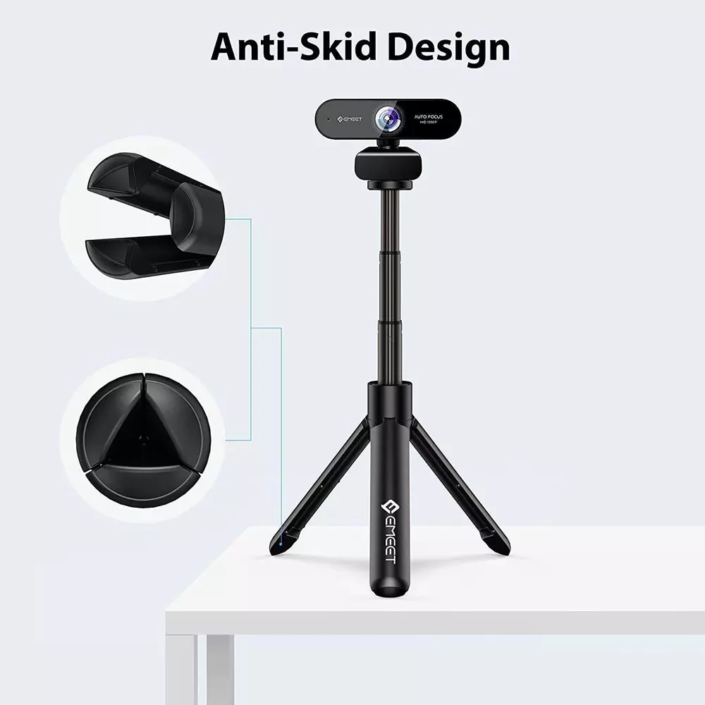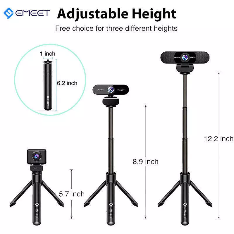 EMEET Webcam Tripod Features: Lightweight and Portable Adjustable Height High Compatibility Anti-Skid Design Stable and Durable Product Specification Item Weight:2.7 ounces Adjustable Height:Yes (5.7-12.2 in) Silicone Anti-skid Pad:Yes Suitable for:Webcams/Phones/GoPros/Mirrorless Cameras Professional design for webcams It is a professional webcam tripod and it is a special design for various eMeet webcams. Perfectly compatible with eMeet C960, C980 Pro, Nova, and Jupiter. Provide you a stable and clear viewing angle when using webcams. Making you fully concentrate on your teleconferencing and your video calls. This eMeet pocket tripod weighs only 76.5 g (2.7 oz), a normal egg is 50 g (1.8 oz), and its minimum size: 1 in (W)*6.2 in (H). You even can put this compact tripod stand into your pocket or handbag and carry it to wherever you go. The flexible tripod with three adjustable height levels (5.7-12.2 in). When you make a video call by using a phone, adjust it to the lowest height 5.2 in, which is a suitable height that others can see your face closely and clearly. Stretch the small tripod to 8.9 in when having a video conference to show your upper body decently. When you travel with families or friends, extend the travel tripod to an extra height of 12.2 so that everyone can be included in pictures. The small tripod with a 1/4 '' screw is perfectly compatible with various devices. It can be used as a webcam tripod, a phone tripod, a camera tripod, and a GoPro tripod. Meet your different needs in your daily life. You can use the tripod to shot a video, start live streaming on social media, record your beautiful and delightful daily life when having a small party, and provide a stable and clear image when you are having a meeting online. (The phone holder is not included.) This webcam stand has non-skid rubber feet to avoid tripod slipping. You can put it on tables with different materials, without worrying about the tripod moves or it is unstable. If you buy a tripod without an anti-skid function, the tripod will move when it is put on a smooth desktop and your device on this tripod will slide down. Made of the latest silicone materials. When you use a webcam without a tripod, you only can use your hands to hold it or clip it to a computer screen, but they are all not stable as the tripod. The tripod offers maximum stability for your devices and helps you to take more clear photos. Stretchable Tripod Stretchable Tripod Step 1: Pull the head of the tripod Step 1: Stretch the feet of the tripod from the bottom Step 3: Adjust it to a suitable height Return: - 30-day money-back guarantee for any reason. - 12 month warranty for our product - If you are not satisfied with the product within 30 days, we would like to provide you with refund or thereplacement - Please connect our Custmer Experience team via eBay Shipping: - Item will be shipped within 2 business day after the payment has been received - Shipping is standa