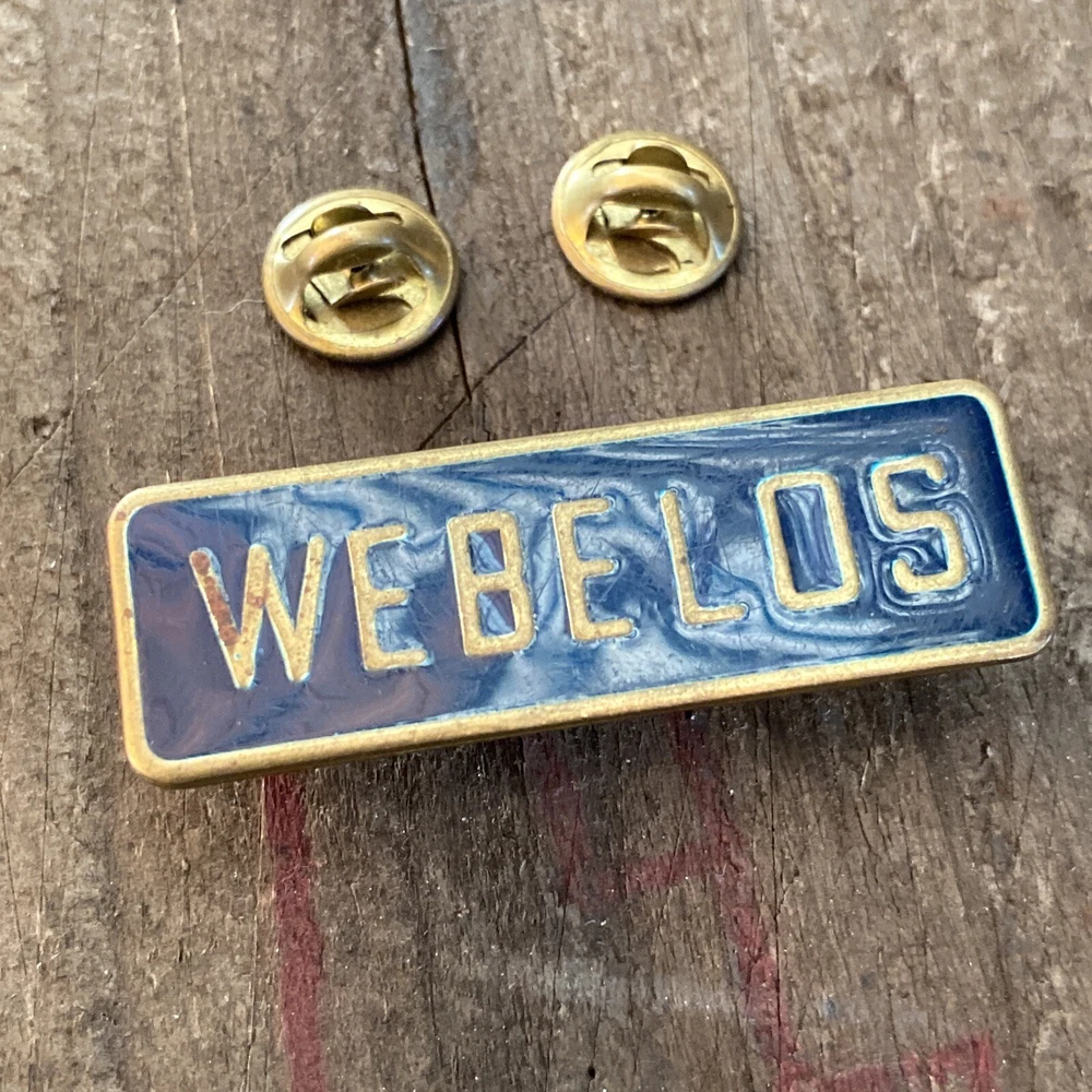 This beautiful pin/tie tac features a stunning navy blue enamel background with a brass and enamel design. It's perfect for any collector or fan of vintage and antique jewelry. The pin is made by Webelos and is a great addition to your collection. The pin is made of high-quality enamel and brass, giving it a unique and stylish look. It's perfect for adding a pop of color to any outfit. The pin is pre-owned but in excellent condition, with no signs of wear or damage. It's a great gift for anyone who loves vintage jewelry or for yourself.