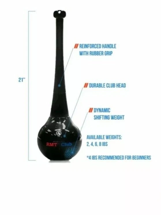 Introducing the Weck Method 8 Lb RMT Club Strength Training Swing Tennis Golf Baseball USA VGUC. This heavy club is perfect for gym and training activities, and it targets various muscle groups such as the torso, chest, legs, glutes, shoulders, arms, back, biceps, triceps, abdominal, thighs, and full body. The club is made of durable plastic material and it weighs 8 lb, making it a perfect swing for baseball golf and tennis players. The Weck Method 8 Lb RMT Club Strength Training Swing Tennis Golf Baseball USA VGUC is designed for maximum performance and it comes in a sleek black color. The club is 22 inches in length and height, and it has a width of 7 inches. This resistance trainer is perfect for those who want to improve their strength and swing technique. It is manufactured in the United States and it comes with a unit type of lb. The club is not personalized, and it is suitable for various sports and activities.