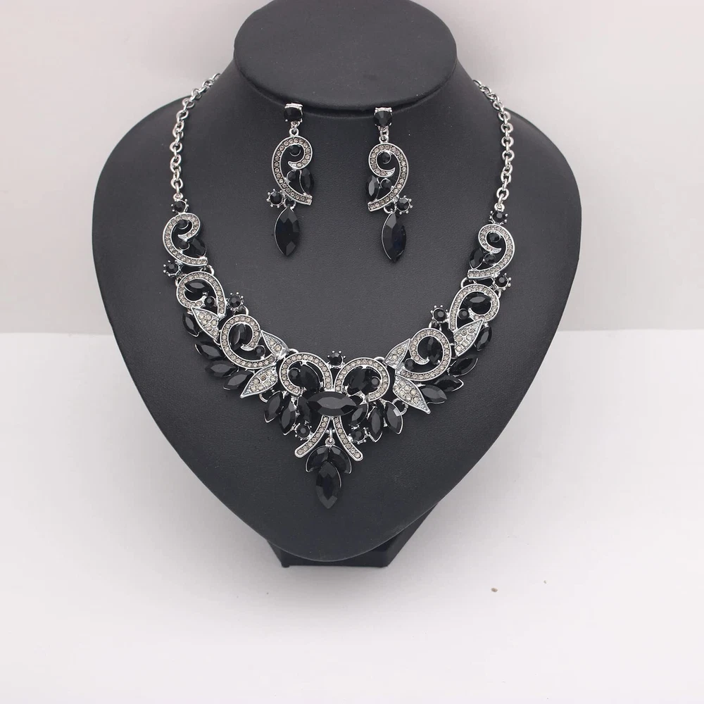 Wedding Bridal Prom Austrian Crystal Rhinestone Statement Necklace Earrings Bracelet Ring Wedding Party Costume Jewelry Sets for Brides Women Product Details Color: Black-Platinum Plated Brand: SFE MPN: Does not apply UPC: Does not apply EAN: Does not apply Department : womens Date First Available : April 15, 2022 Brand, Seller, or Collection Name: SFE Metal: gold plated Material: Metal Gem Type: Crystal Clasp: Lobster Clasp SFE Brands: This Jewelry Sets could be Birthday Gifts, Anniversary Gifts, Christmas Gifts, Graduation Gifts,Valentine's Day Gifts,Bridal Wedding,Bridesmaid,Party,Birthday, Prom,etc. Never outmoded design, elegant and stylish, you will never regret for this choice. The earrings skin test grants allergy free, nickel-free and lead-free, wear it rest assured. About SFE Brands: We have a strong design team, we will launch different styles every season, follow us! We will give you a different surprise. Tips: 1.Wipe your earrings up with wipes: they perform miracles on jewelry. Avoid contact with water, no baths, pools, sea water, etc. If it gets wet that can leave dark water spots which are difficult to remove 2.Then wipe with a clean dry soft cotton cloth to bring back the shine. Please don't wear it when sleeping. To keep your gorgeous jewelry looking like new, take it off at the end of the day and give it a quick wipe down with a microfiber cloth 3.Put it inside a soft cloth pocket or fabric swath, avoid it from rubbing against other jewelry