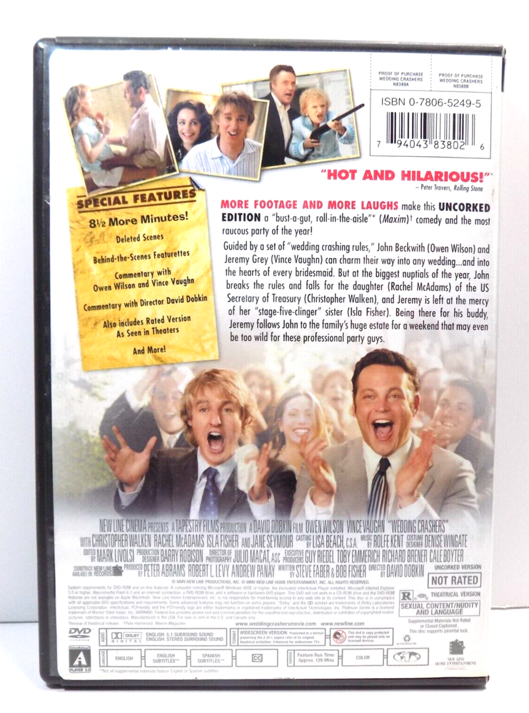 Wedding Crashers - DVD Widescreen Edition Rated R Theatrical Version Run time - 128 minutes Good condition DVD - Good Case - Good Inlay - None From smoke free environment Pictures are of actual item listed Ships same day or next day after purchase
