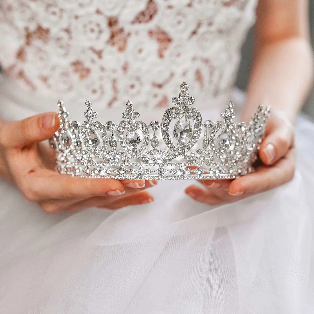 👸Material: Wedding crown is made of hard alloy and rhinestones. It's anti-rust, nickel free and anti-alleryic for safe wearing. 👸Size: Bridal crown measures approximately 2.68" in height, 5.43" in diameter, 0.53 lb in weight, Suitable for adults and teenagers. 👸Securing: Crowns for women is full crown design. Pin loops at the bottom of crown for extra . (Bobby pins included) 👸Occasion: The silver crown is ideal for weddings, anniversaries, engagements, proms, Halloween, parties, costumes, pageants, photography props, etc. It also can be used as a CAKE TOPPER. 👸: Feel free to us by if you have questions or need help. .