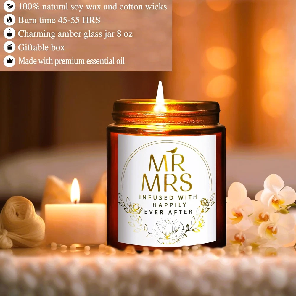 🌺 MR & MRS GIFTS: Send your best wishes to the happy couple and make their special day even more memorable with our beautifully crafted “MR & MRS ” scented candle. This thoughtful gift with a warm sentiment is infused with the magic of true love and the promise of happily ever after. Our lovely candles will leave them smiling every time they see it. 🌺 CELEBRATE LOVE, LAUGHTER, AND FOREVER: Celebrate the journey of love with a candle that’s as special as the occasion itself. Whether it’s for a wedding gift for couple 2024, future Mr. and Mrs. gifts, engagement gift, bridal shower present, wedding shower gift, bachelorette party present, congratulations gift for newlywed couple, or a thoughtful gesture for the bride and groom, these candle gifts are sure to delight. 🌺 UNIQUE LUXURIOUS SCENT: Briojoy All-Natural candle has a harmonious blend of sea salt and jasmine, perfect for creating a serene wedding atmosphere. This is made with premium soy wax and natural essential oils for a clean, long-lasting burn. The elegant gold foil label exudes sophistication, making it an exquisite decor piece. Light it during romantic dinners, quiet moments, celebrations, anniversaries, or lazy Sunday mornings—they’ll cherish it forever. 🌺 TAKE GIFT-GIVING TO THE NEXT LEVEL: Celebrate your loved one's milestone with this special candle. Our amber jar candles are packaged in a stylish box to make your loved ones smile before they even open it. These aromatherapy candles aren’t just functional, but beautiful as well. Our highly scented candles bring joyful experience to you and others around you. 🌺 NEW JERSEY DESIGNED: We at Briojoy believe your home captures cherishing moments of all the things and people you love everyday. It is where you discover the simple pleasures that become a piece of your ideal home. With this in mind, we purposefully designed and crafted our candles to enhance your experiences with family and friends. Our mission is to promote happiness and relaxation to evoke pleasant memories and comforting warmth through the power of scent- The Scents of Happiness. Scented soy candle for home