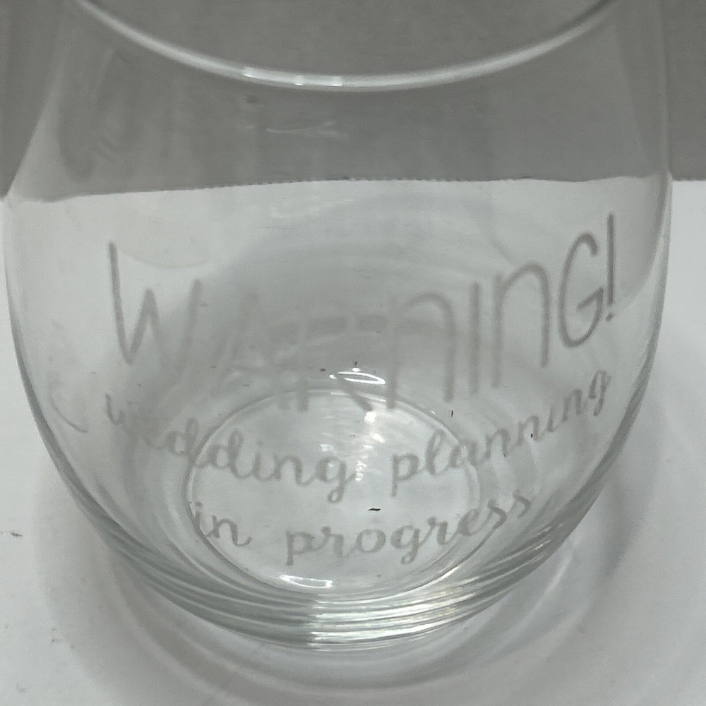 Elevate your toasts and celebrations with the "Warning! Wedding Planning In Progress" Wine Glass. This unique stemless glass, crafted for those who appreciate a blend of fun and functionality, boasts a clear glass material that showcases your beverage beautifully. Its round shape and 12 oz capacity make it perfect for your favorite wines, ensuring you enjoy every sip with a view to the blissful union of marriage. Measuring 5 inches in height and 3.5 inches in width, this 8 oz weighted glass is both a practical and decorative addition to your wedding-themed festivities or any joyous occasion. Handmade with attention to detail, this glassware is a delightful way to commemorate your special moments and shares a lighthearted message with every use.
