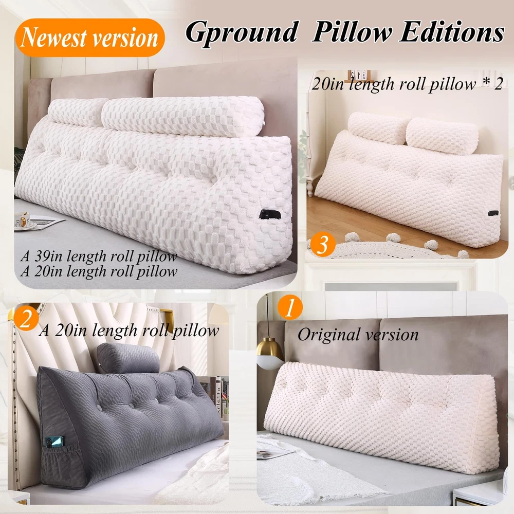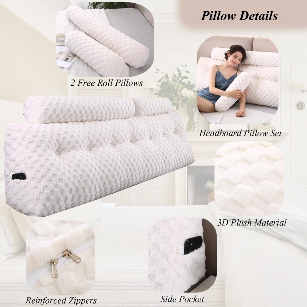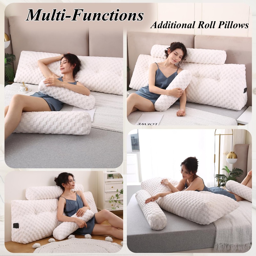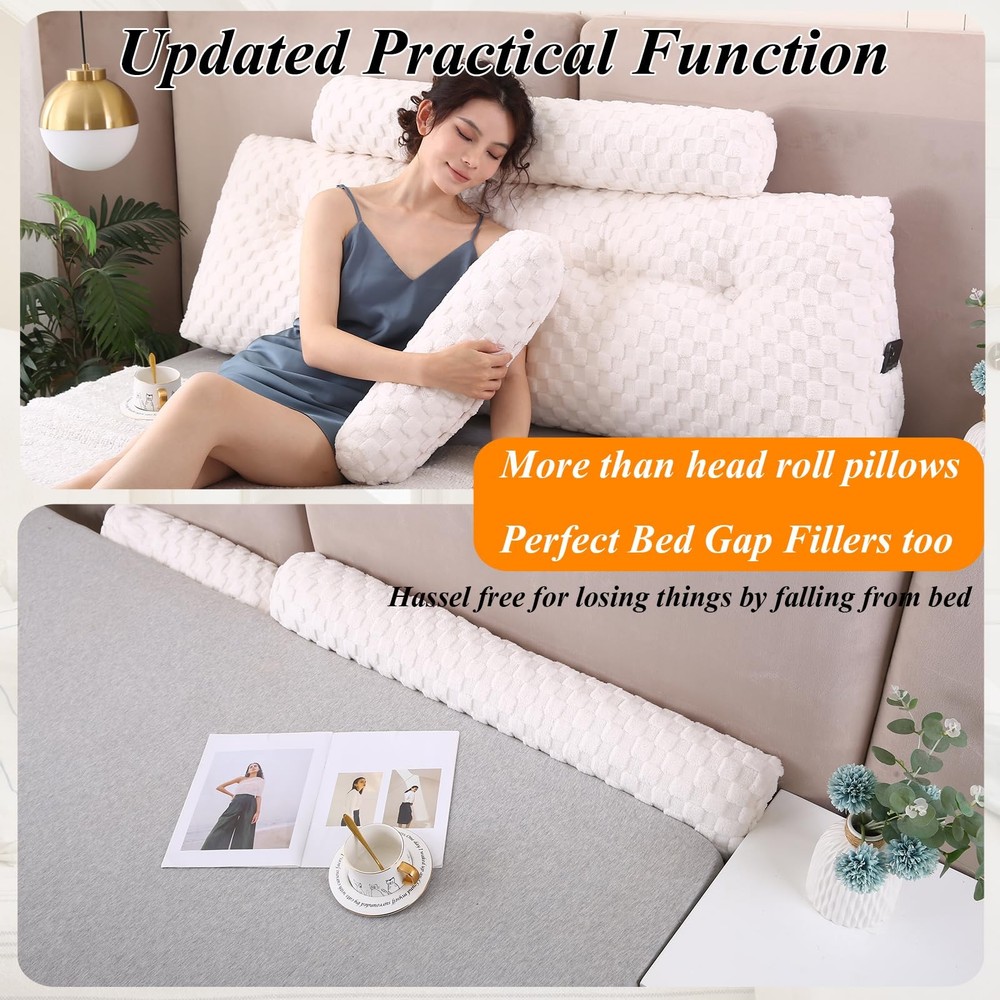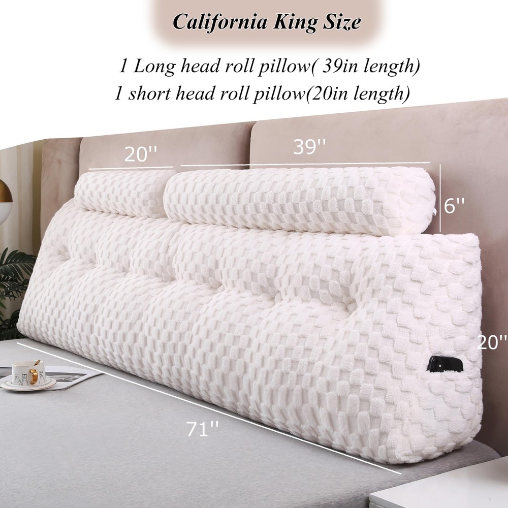 Made For You: Package includes a triangular wedge headboard pillow, a long roll neck pillow and a short roll neck pillow. The wedge pillow for headboard comes in various sizes (twin, full, queen, CA king, king), the wedge pillows has a very good visual effect to match your interior decoration, leaving your only concern on which bedding to accompany this piece. Premium Quality: The wedge headboard pillow is made of premium 3D quality velvet fabric – the plush texture of this velvet creates a rich and luxurious feel while still providing an excellent comfort, softness, and support. The headboard pillow is filled with 40D high-density polyester fibers, and its excellent resilience can give you long-lasting comfort when leaning against the headboard. The upholstered headboard pillow will bring comfort to you and your family. Ergonomically Shaped Wedge Headboard Pillow: Our wedge headboard pillow is ergonomically designed to meet natural curvature of the back and provide the perfect support for the upper body.It helps reduce your back and shoulder stress and provide proper support while reading watching or resting. Multipurpose and Occasions: The large wedge pillow for headboard can be used for many occasions. All the sizes can be used in various occassions and can be functional for mutiple purposes such as using on a daybed or couch or on the floor. Also the headboard pillow is an essential dorm and room choice. Always Here for You: Here at , we conduct mandatory quality checks down to every little detail to better provide our pillow ultimate comfort firmness and longevity.