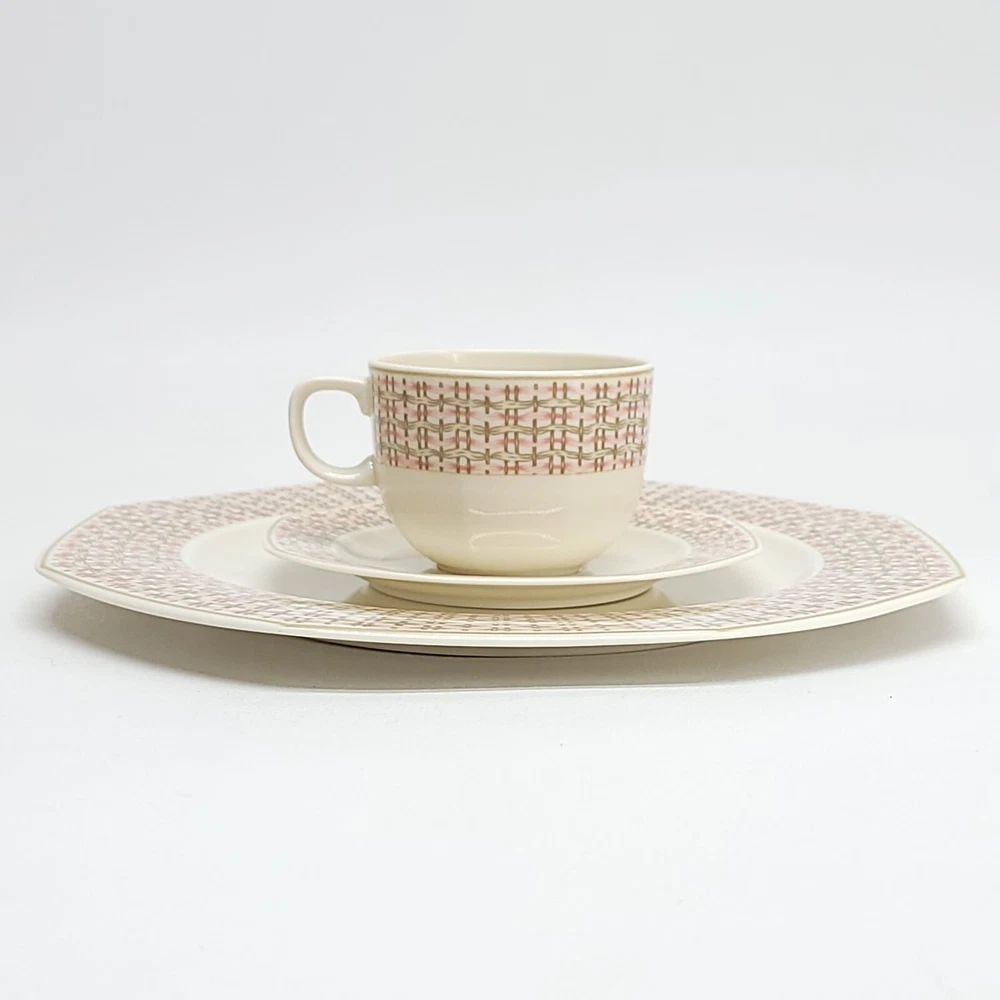 Set of 3. Cup, saucer and plate. Plate measures 10.75" across. Saucer measures 6" across. All 3 are in excellent condition. We are happy to answer any questions you may have. All items are packaged with care and shipped within one business day or sooner. Thanks for stopping by!