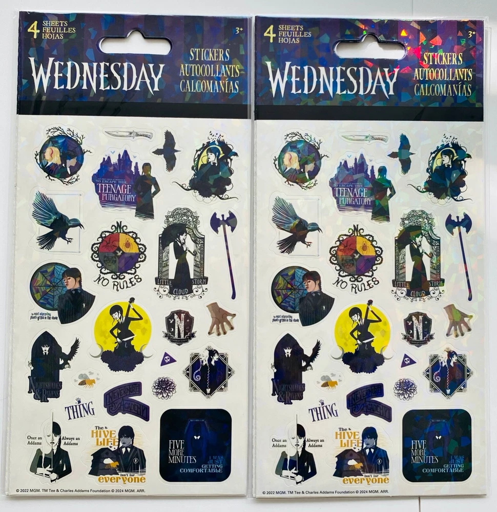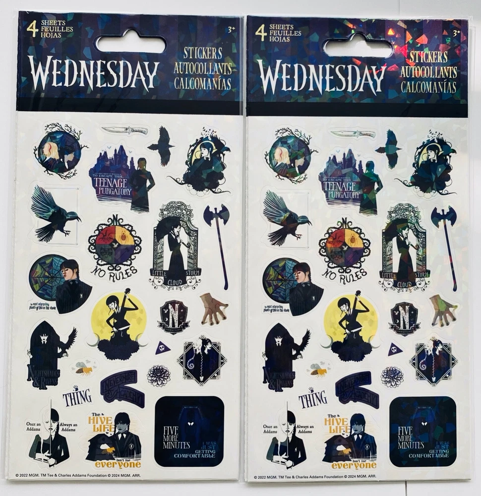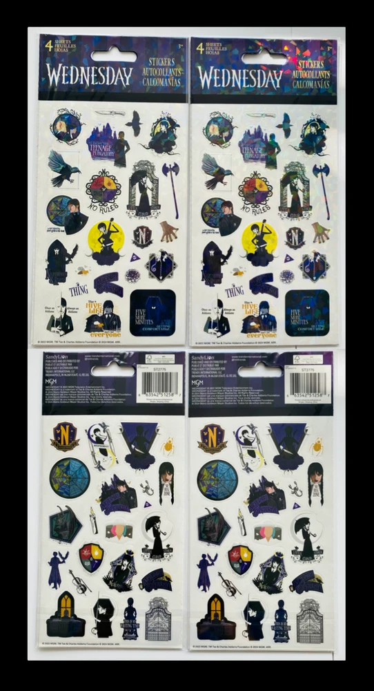 Color:MulticolorMovie:WednesdayType:StickerBrand:SandyLionCharacter Family:WednesdayMaterial:Paper, Prismatic Glossy StickersTV Show:Nevermore Academy WEDNESDAY'sModel:Wednesday AddamsNumber of Items in Set:4Character:WednesdaySet Includes:StickerCountry/Region of Manufacture:United States