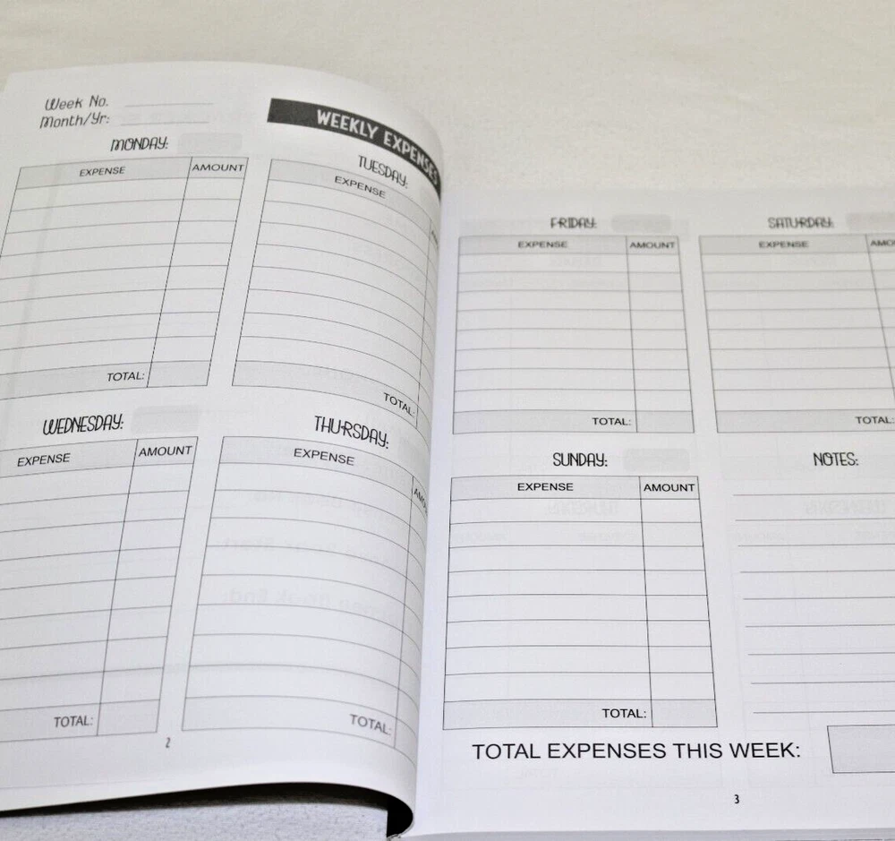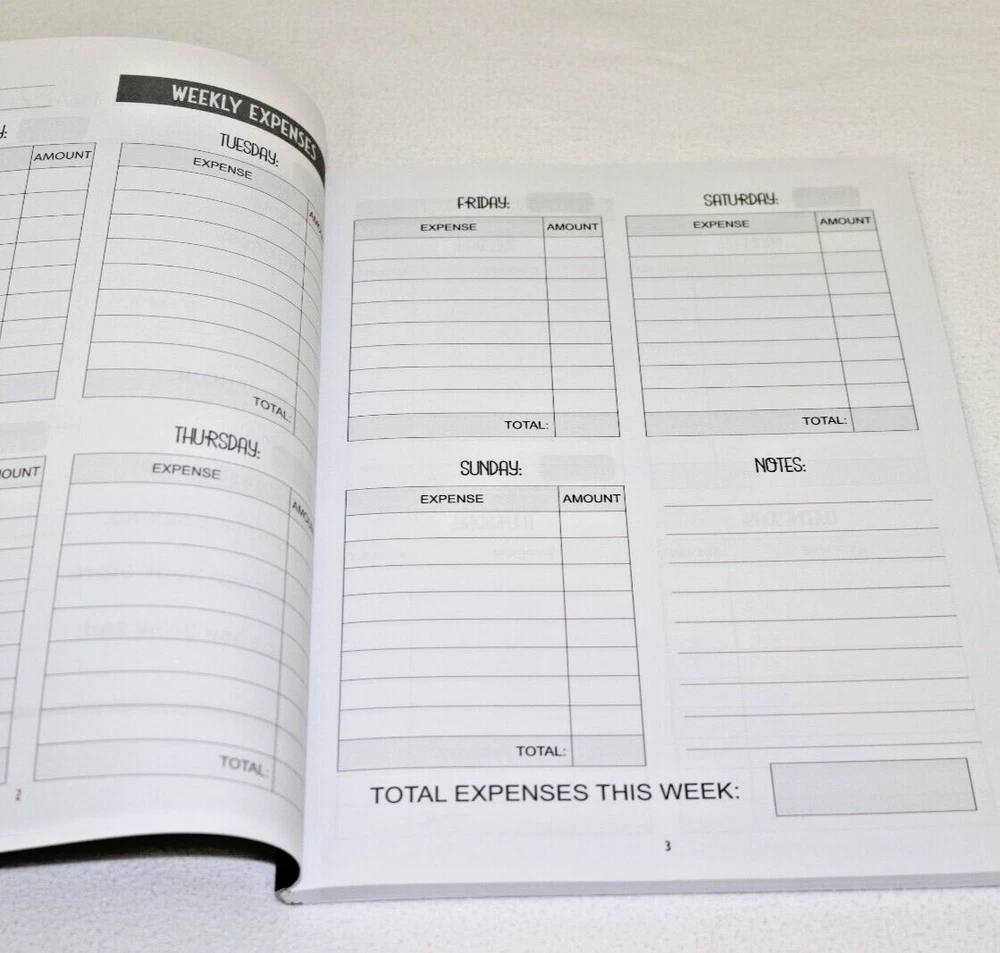 Weekly Expense Tracker - Easy Format Keep track of your expenses with this simple expense tracker log book. Nothing complicated here, just a simple way to keep tabs on spending, whether for business purposes or personal accountability. Each week is spread over 2 pages, Monday to Sunday. There are 8 spaces to log down your spending each day and then at the end of the 4-week run, there is a 2-page quick summary for an 'at-a-glance' birds eye view of your expenses. This expense tracker covers 52 weeks in a 124-page logbook. Undated, so you can start whenever you like. Details: 8.5" x 11" (Large size) Paperback 124-Pages 52 week coverage Undated, so unrestricted Soft matte cover White Paper/Industry bound An easy to use, no-fuss expense tracker for business or personal use. Keep tabs on you expenses and outgoings with this tracker.