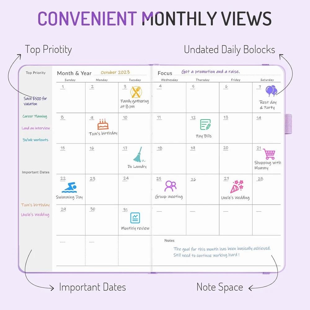 Fast Shipping Great Customer Support Satisfaction Guaranteed DESCRIPTION Shipping Shipping Shipping All domestic packages are shipped for Free (Unless other shipping method was selected during the checkout) Most items ship and arrive much sooner than the estimate delivery date. Usually within 2-3 days from payment. However, we have longer estimates to compensate for the occasional delay or supply chain breakdown. We do not accept P.O. BOXES - PLEASE PROVIDE A PHYSICAL ADDRESS Return Return Return In the event that you would like to return your purchase, we allow returns that are processed within the defined return date (the return date is to be found in the return policy/shipping and handling section) Please contact us for a return authorization and the return shipping address. Payment Payment Payment PayPal is our preferred method of payments it's the quickest, easiest and most secure way to pay for your goods or services online. PayPal offers buyer and seller protection should there be a problem. If you do not have a PayPal account, to get started and buy your first item with us is very easy. Simply click on the 'Buy It Now' button and follow the eBay checkout steps. Select PayPal as the payment method you then will be given the chance to enter your card details in to PayPal's secure checkout in order to pay for your order. Once the payment has been made, you will then be given the opportunity to make your own PayPal account to make paying for your items in the future very easy. Should there be a problem with payment please do let us know. Feedback Feedback Feedback Customer satisfaction is very important to us. If you have any problem with your order,please contact us and we will do our best to make you satisfied, please do not leave a negative feedback before we resolve your problem. We guarantee that your issue will be solved quickly. As long as you are happy with your purchase of , please leave us a positive feedback. Your feedback is very important to us it affects our search placement on eBay. We will leave a positive feedback for you in return automatically once we receive your feedback. Contact Us Contact Us Contact Us If you have any queries, please contact us via ebay. We usually respond within 24 hours on weekdays. Thank you for visiting our ebay store! Undated Planner with Simple Layout: Come with 12 months of monthly and weekly pages, providing a fresh start for an entire year at any time! This planner features a simplified layout for ease of use, offering spacious writing space to plan your schedule freely. Monthly Calendar & Weekly Planner: Each monthly spread with large date box helps you easily mark appointments, agenda, important dates, bills due, etc. Weekly two-page spreads provide generous lined writing space for more detailed planning, helping you keep track of daily tasks and develop habits or skills. Additional Planner Features: This calendar planner starts with Yearly Goals and Mind Map pages for goal setting and thoughts organization. It also includes holiday lists to keep on top of your special dates, contact page and extra notes pages to jot down your thoughts. Trusted Quality for Full Year Use: Adopted 100GSM thick paper for easy writing and preventing ink bleeding. Measuring 5.4" x 8.4", perfect size to fit in your purse or backpacks and take anywhere. Our cute planner also features an inner pocket, pen loop, and ribbon bookmarks. Organize Your Day & Keep Focus: How tricky it can be when a thousand things buzzing around your head! This planner journal is definitely a life saver, helping you stay focused on your tasks throughout the week. Use this notebook to simplify your life and organize your day for maximum efficiency. Weekly Planner 2025 A5 Teal Marble Organizer Journal for Goals & Tasks Click here to see description Fast Shipping Great Customer Support Satisfaction Guaranteed DESCRIPTION Shipping All domestic packages are shipped for Free (Unless other shipping method was selected during the checkout) We ship within two business days of payment, usually sooner Standard FREE shipping takes between 3-5 business days Expedited shipping takes between 2-3 business days Overnight shipping takes between 1-2 business days We do not accept P.O. BOXES - PLEASE PROVIDE A PHYSICAL ADDRESS We Ship Globally using ebay's GSP, the item is sent to a logistic center in KY and shipped from there to the rest of the world. International customers are responsible for all duties and taxes Contact your local authority for questions related to the amount of duties or taxes you will be responsible for Return In the event that you would like to return your purchase, we allow returns that are processed within the defined return date (the return date is to be found in the return policy/shipping and handling section) Please contact us for a return authorization and the return shipping address. Please contact us for a Return Merchandise Authorization (RMA) number. We advise you to use a reputable carrier service when returning your goods. Please pack all returns appropriately. We ship globally Via eBay's global shipping program (GSP). Thus we don't cover returns for items shipped globally. Buyers returning such items will be refunded ONLY for the item's cost and not for the shipping. please check the Voltage information and make sure it matches the one in your country. In case it's not stated in the description, do ask us. Payment PayPal is our preferred method of payments it's the quickest, easiest and most secure way to pay for your goods or services online. PayPal offers buyer and seller protection should there be a problem. If you do not have a PayPal account, to get started and buy your first item with us is very easy. Simply click on the 'Buy It Now' button and follow the eBay checkout steps. Select PayPal as the payment method you then will be given the chance to enter your card details in to PayPal's secure checkout in order to pay for your order. Once the payment has been 