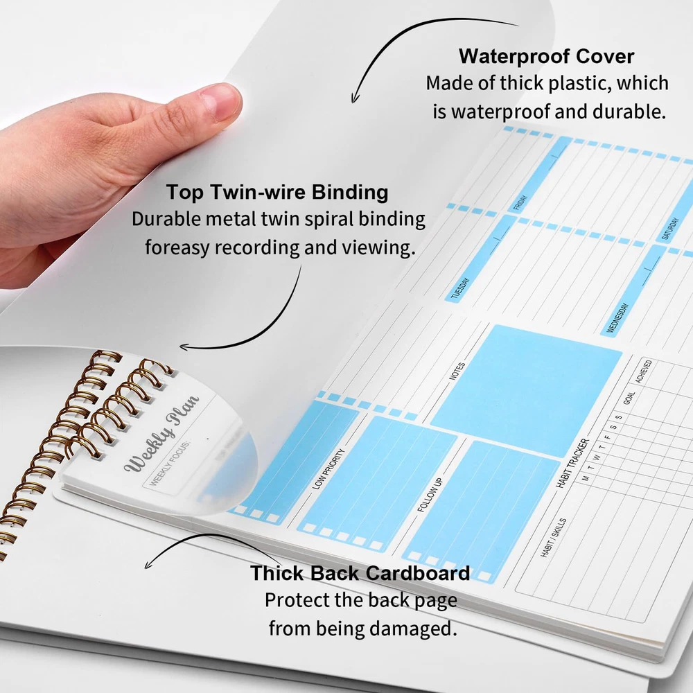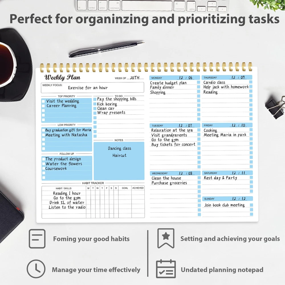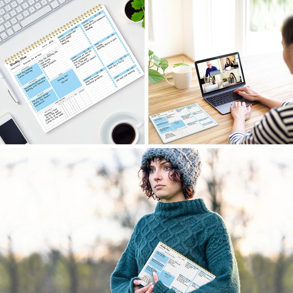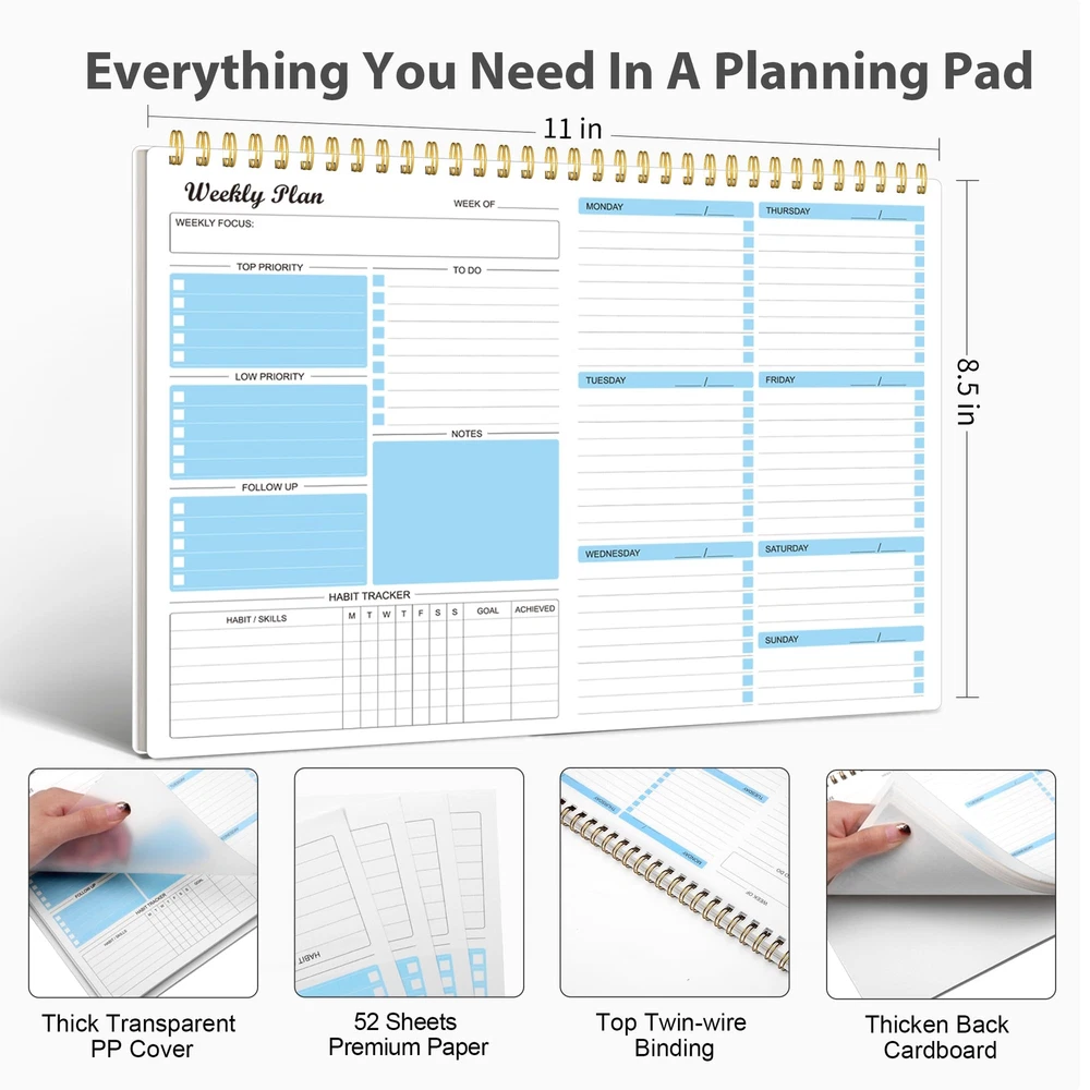 Weekly Planner Notepad Undated Weekly Schedule Planner To Do List Notebook Goals Planning Pad Habit Tracker Journal for Man & Women,52 Weeks (8.5x11") ✍MAKES YOUR LIFE PRODUCTIVE - This weekly planner notepad focuses on meeting any of your needs. A weekly planner notepad includes space to write your to-do list, appointments, and meetings and keep track of all days clearly with the weekly view. Blocks in the weekly page for priority and notes columns for your spontaneous and important events. Manage your time effectively. ✍UNDATED WEEKLY PLANNER- 52 Weeks, undated weekly planning pages, let you pick up exactly right where you left off. There are no unnecessary sections to fill in and no skipping dates or pages. The weekly planner is conveniently undated so you can plan in 2024, 2025, or even 2050! ✍FUNCTIONAL DESIGN-Premium quality covers and twin-wire binding, a sturdy cardboard backing. classic and stylish combinations of appearance. Premium thick paper, reduces ink bleeding, erasing fraying and shading issues. Provide you with a better writing experience. ✍POPULAR PERFECT SIZE The size of this weekly planner is 8.5x11 inches for 52 weeks which is large enough for your scheduling and appointments. A perfectly portable weekly planner journal for work, home, school, and travel is a perfect gift. ✍HIGH QUALITY AND SERVICE- We will exchange or refund your item asap if you're having any type of quality issues or if for any reason you’re not completely satisfied with our products. Simply reach out to us via an Amazon message for a hassle-free refund. ✍MAKES YOUR LIFE PRODUCTIVE - This weekly planner notepad focuses on meeting any of your needs. A weekly planner notepad includes space to write your to-do list, appointments, and meetings and keep track of all days clearly with the weekly view. Blocks in the weekly page for priority and notes columns for your spontaneous and important events. Manage your time effectively. ✍UNDATED WEEKLY PLANNER- 52 Weeks, undated weekly planning pages, let you pick up exactly right where you left off. There are no unnecessary sections to fill in and no skipping dates or pages. The weekly planner is conveniently undated so you can plan in 2024, 2025, or even 2050! ✍FUNCTIONAL DESIGN-Premium quality covers and twin-wire binding, a sturdy cardboard backing. classic and stylish combinations of appearance. Premium thick paper, reduces ink bleeding, erasing fraying and shading issues. Provide you with a better writing experience. ✍POPULAR PERFECT SIZE The size of this weekly planner is 8.5x11 inches for 52 weeks which is large enough for your scheduling and appointments. A perfectly portable weekly planner journal for work, home, school, and travel is a perfect gift. ✍HIGH QUALITY AND SERVICE- We will exchange or refund your item asap if you're having any type of quality issues or if for any reason you’re not completely satisfied with our products. Simply reach out to us via an Amazon message for a hassle-free refund. Shipping from the USA All of our products are shipped from the USA, ensuring quick delivery to your destination. Payment We offer the following payment methods: PayPal, credit card, bank transfer, and eBay's secure payment system. Free Shipping & Free Returns Shipping within the USA is FREE. Additionally, any return is absolutely free for you. Risk-Free Purchase You have the option to return an item within 30 days without any justification. We cover the return shipping costs! Fast Shipping We ship immediately upon receipt of payment. Generally, the package is delivered within 2-3 days in the USA. If it takes longer, we will contact you. Quality and Costs Made in Europe, USA, China No customs fees or additional charges Total satisfaction guarantee Invoice with declared VAT available upon request in .pdf format Feedback Your feedback is very important to us. After you pay for your purchase, you will automatically receive positive feedback from us.