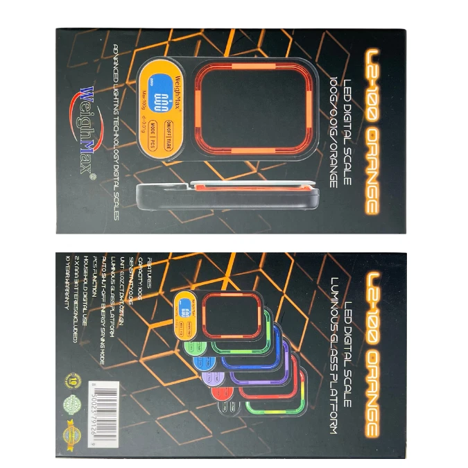 WEIGHMAX L2 100 X 0.01G LED DIGITAL SCALE – PRECISION WITH ADVANCED LIGHTING TECHNOLOGY The Weighmax L2 combines accuracy, modern aesthetics, and cutting-edge lighting technology to create a digital scale that’s both highly functional and visually appealing. With a capacity of 100 grams and a sensitivity of 0.01 grams , it’s perfect for weighing jewelry, ingredients, and other small items with precision. Its luminous LED glass platform and large backlit LCD display make it not only easy to use but also a sleek addition to any workspace. KEY FEATURES High-Precision Measurements: Offers precise readings with 0.01g sensitivity and a maximum capacity of 100g . Advanced Lighting Technology: Features a luminous LED glass platform , enhancing visibility and adding a modern aesthetic. Multiple Unit Conversions: Switch between grams (g) , ounces (oz) , carats (ct) , and pennyweight (dwt) for versatile applications. Large Backlit LCD Display: Ensures clear and easy reading, even in low-light environments. Energy-Saving Auto Shut-Off: Automatically powers off when idle, preserving battery life. Compact and Sleek Design: Combines functionality with elegance, making it perfect for home or professional use. Durable and Long-Lasting: Backed by a 10-year warranty , ensuring reliable performance for years to come. SPECIFICATIONS Feature Details Model Weighmax L2 LED Digital Scale Capacity 100 grams Readability 0.01 grams Weighing Units g, oz, ct, dwt Platform Luminous LED Glass Display Large Backlit LCD Auto Shut-Off Yes (energy-saving feature) Power Source 2 AAA batteries (included) Warranty 10 years WHAT’S INCLUDED IN THE BOX? Weighmax L2 Digital Scale 2 AAA Batteries User Manual WHY CHOOSE THE WEIGHMAX L2 LED DIGITAL SCALE? Precision You Can Trust: With 0.01g sensitivity , it ensures highly accurate results for any weighing task. Stylish Design: The luminous LED glass platform makes it stand out in any setting. User-Friendly Features: Large backlit display and multiple weighing units simplify your experience. Long-Term Durability: Supported by a 10-year warranty , this scale is built to last. Energy Efficient: Auto shut-off conserves battery life for long-term, hassle-free use. The Weighmax L2 LED Digital Scale is the ultimate blend of precision, durability, and modern design. Perfect for professionals, hobbyists, or anyone in need of a reliable scale, this product ensures you achieve accurate results every time!