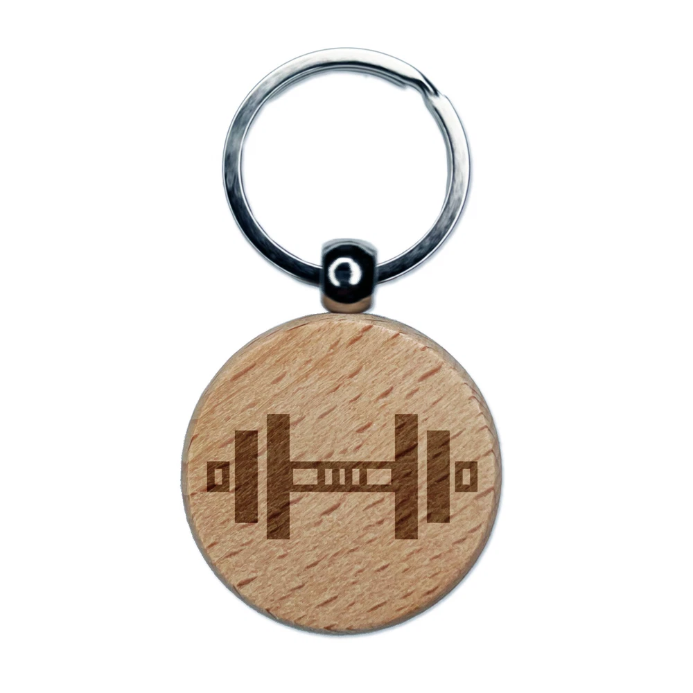 Weight Dumbbell Workout Icon Engraved Wood Round Keychain Tag Charm