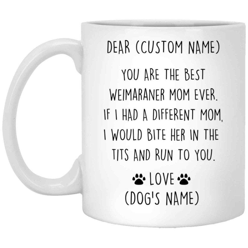Weimaraner Mom Birthday Gift Weimaraner Mom Christmas Gift Weim Mom Valentine Gift Weim Mom Mug Weim Lover Gift Weim Mom Appreciation Product Details.. This high quality 11oz. ceramic white mug has a premium hard coat that provides crisp and vibrant color reproduction sure to last for years. Perfect for all hot & cold beverages. The highest quality printing possible is used. It will never fade no matter how many times you wash it. Material: 100% Ceramic. Print both sides. Dishwasher and Microwave Safe. High Gloss + Premium White Finish. Printed in the U.S.A. Personalized & Custom. We support personalized and custom mug to add custom, when placing an order, you can add notes to the "order note" in shipping address section. Also you can contact us directly via message. Shipping Info. Ready to ship in 1 to 2 business days, All products are made-to-order and proudly printed in the United States. Shipped by USPS and DHL, You will receive your order in 5-7 days. Replace & Refund. All products are defective during shipping broken, chipped will be replaced free of charge. You are not satisfied with the product, we will refund 100% money to you. If any other issues arise, please do not hesitate to message, we would be more than happy to assist you.