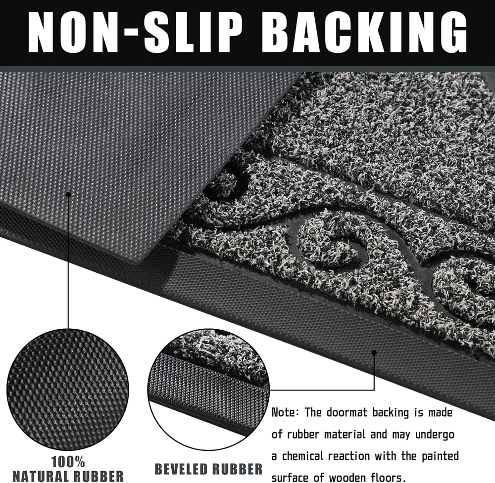 Store New Arrivals Add to Favorite View Feedback Contact Fast deliveries to the customer's home Quality customer service John Make the customers happy! Welcome Mat, Heavy Duty Sturdy Door Mats for Home Entrance Outdoor Indoor, Front Doormat for outside Patio Floor Entry Porch Garage Office, Waterproof, Low Profile, 29.5 X 17, Black Grey Description Rubber 【Perfect Dirt Trapper】: Yimobra welcome mat surface is made of high-quality artificial grass, compared to other common materials, this can be more effective in trapping dirt, dust, mud, sand, or other debris and preventing them from entering the room, thus keeping your home clean and tidy. The Sturdy rubberized beveled edges also trap water, preventing excess water from splashing onto the floor! 【Non-Slip Rubber Backing】: The back of the doormat is made of natural rubber, which has less odor, more tensile strength, and higher tear resistance, this heavy-duty doormat fits perfectly on the floor and helps to prevent slipping when entering and exiting, ensuring your family's safety 【Low Profile】:Yimobra front door mat is designed with 0.25-inch height, which won't hinder the door from opening and closing, perfect for daily use in high-traffic areas 【Easy Clean】:Yimobra outdoor door mat can be cleaned simply by vacuuming, brooming, or by patting the backing and shaking the mat. For deeper cleaning, rinse the doormat in a washing machine or garden hose and hang it in a ventilated area to dry 【Sturdy & Versatile】:Yimobra outdoor welcome mat is Sturdy , sturdy, and flexible, can be placed in the entrance, hall, patio, garage, laundry room, and other areas; Heavy and sturdy materials, soft and flexible; Simple and stylish design complements any decoration. Product Description 1 DEEP GROOVES 2 RUBBER BACKING 3 BEVELED RUBBER 4 LOW PROFILE 5 EASY TO CLEAN 1 OUTDOOR 2 ENTRANCE 3 BALCONY 4 STARIS 1 SPRING 2 SUMMERTIME 3 AUTUMN 4 WINTER The video showcases the product in use. The video guides you through product setup. The video compares multiple products. The video shows the product being unpacked. Style Modern Weave Type Machine Made Assembly required No Pattern welcome mat Warranty Type Limited Warranty or Full Warranty Is Stain Resistant No Theme Stripe Number of Pieces 1 Is Autographed No Product Dimensions 29.5"L x 17"W Batteries required No Material Artificial Grass Rug Form Type Doormat Item Thickness 0.3 Inches Indoor/Outdoor Usage Outdoor Water Resistance Level Waterproof Room Type corridor Item Weight 2.5 Pounds Pile Height Low Pile Construction Type Machine Made Special Feature Entrance, Anti-slip Color Black Grey Shape Rectangular Back Material Type Rubber Fabric Type Rubber Size 29.5" x 17" ABOUT US We offer the best prices around on high quality products. Our E-store includes media such as books, movies, music and games while offering electronics, toys, sporting apparel, clothing, tools, general home, garden items and more. SHIPPING We are always working hard to ensure your package arrives as soon as possible. Please understand that some factors like weather, high postal traffic, and the performance of shipping companies are outside of our control. We offer free shipping to the lower 48 states and ship within 2 business days of payment, usually sooner. We do not accept P.O. Boxes. Please provide a physical address. For shipping outside of the continental USA, we only use eBay's Global Shipping Program. The item is shipped to KY and then sent to the rest of the world. International customers are responsible for all duties and taxes. Continue to 'check out' to calculate costs for shipping the item to your country. Messages regarding eBay's Global Shipping Program MUST be directed at eBay EXCLUSIVELY. RETURNS We offer a 30-Day Return Policy on items in which you are not completely satisfied with. You have the option of a full-refund or an exchange of the item. No returns are available on items shipped outside of the USA PAYMENT We accept PayPal. CONTACT US This page content is yet to come Please ad us to your favorite seller and visit again later Thank You CUSTOMER SATISFACTION We try our very best to make sure every customer is completely satisfied. If there's a problem, message us! We're happy to help. WE ACCEPT