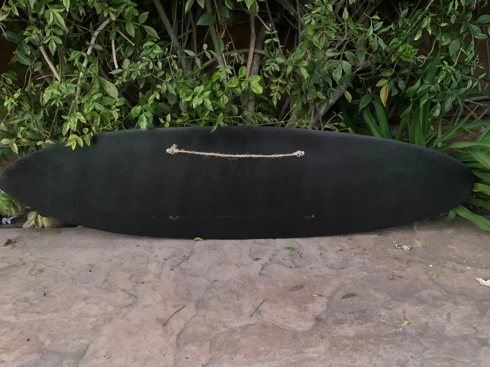 This beautiful hand crafted "Welcome" sign surfboard wall plaque has it all! A surfer catching a wave with swimming dolphins off of a tropical island! Welcome friends into your home, surf shack, or Tiki Bar with the coolest welcome sign around. It would make a great addition to your home, patio, or tiki bar. It is hand carved with intricate detail from top-of-the-line mango wood. It is flat back to hang on the wall. This surfboard would make an awesome gift! 39x 10 inches.