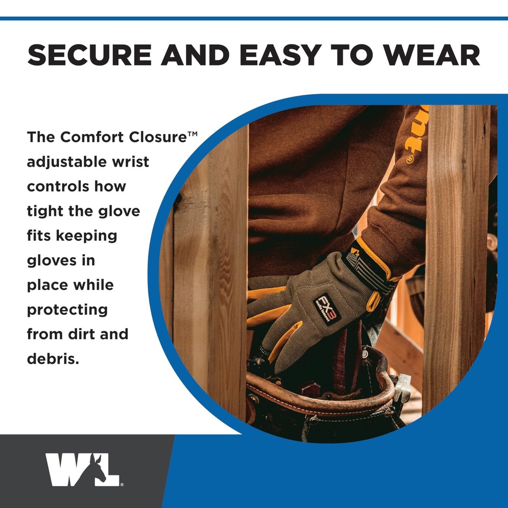 Wells Lamont Men's FX3 Extreme Dexterity Hi-Viz Winter Work Gloves, Extra Large (7794YXL) Product Details Size: X-Large (Pack of 1) Color: Hi-viz Brand: Wells Lamont MPN: 7794YXL UPC: 053300800740 EAN: 0053300800740 Brand: Wells Lamont Material: Faux Leather, Neoprene, Spandex Size: X-Large (Pack of 1) Sport: Construction and General Labor Glove Type: winter work Age Range (Description): Adult Color: Hi-viz Special Feature: Cold Resistant, High Visibility, Insulated, Touch Screen Support Hand Orientation: Ambidextrous Item Package Quantity: 1 Brand: Wells Lamont Material: Faux Leather, Neoprene, Spandex Size: X-Large (Pack of 1) Sport: Construction and General Labor Glove Type: winter work Age Range (Description): Adult Color: Hi-viz Special Feature: Cold Resistant, High Visibility, Insulated, Touch Screen Support Hand Orientation: Ambidextrous Item Package Quantity: 1 Product Care Instructions: Hand Wash Only Item Weight: 4.48 ounces Closure Type: Hook and Loop Style: 7794 UPC: 053300800740 Pattern: Solid Global Trade Identification Number: 40 Included Components: 1 Pair of Gloves Fit Type: Regular Number of Items: 1 Manufacturer: Wells Lamont Part Number: 7794YXL Item Weight: 4.5 ounces Product Dimensions: 4.75 x 1.3 x 10.75 inches Item model number: Wells Lamont - 7794YXL Number Of Pieces: 1 Special Features: Cold Resistant, High Visibility, Insulated, Touch Screen Support Batteries Required?: No Warranty Description: Manufacturer's Defects Date First Available: October 9, 2019 Synthetic Leather, Spandex, Neoprene Imported WATER-RESISTANT SYNTHETIC PALM - Synthetic leather palm provides excellent abrasion, puncture and tear resistance WEAR-RESISTANT - Synthetic leather palm patch and lightly padded knuckles increase overall wear, grip, and durability WATER-REPELLANT - Flexible spandex back of glove wicks water away for added warmth and versatility INSULATION - 70-gram 3M Thinsulate creates warmth without bulk TOUCHSCREEN - Stay connected with your smart devices in cold weather without removing your gloves Water-resistant synthetic leather palm. Water-resistant stretch fit spandex back. Extra wear palm patch. Padded knuckle area for protection. Adjustable neoprene wrist band.