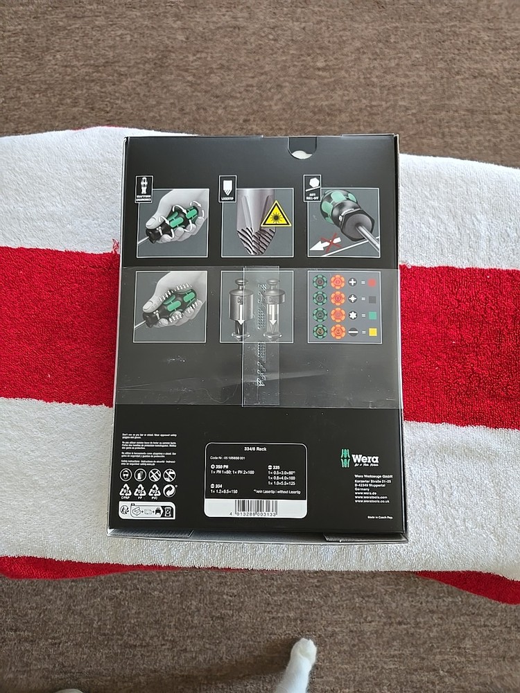 This Wera screwdriver set includes 6 pieces with Slotted and Phillips tip types. It features an Anti-Roll Handle and comes with a rack for storage. The set is part of the Kraftform Plus Lasertip series and is covered by a manufacturer's warranty. It is a mixed set manufactured in the Czech Republic.