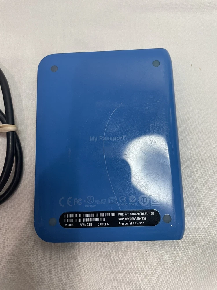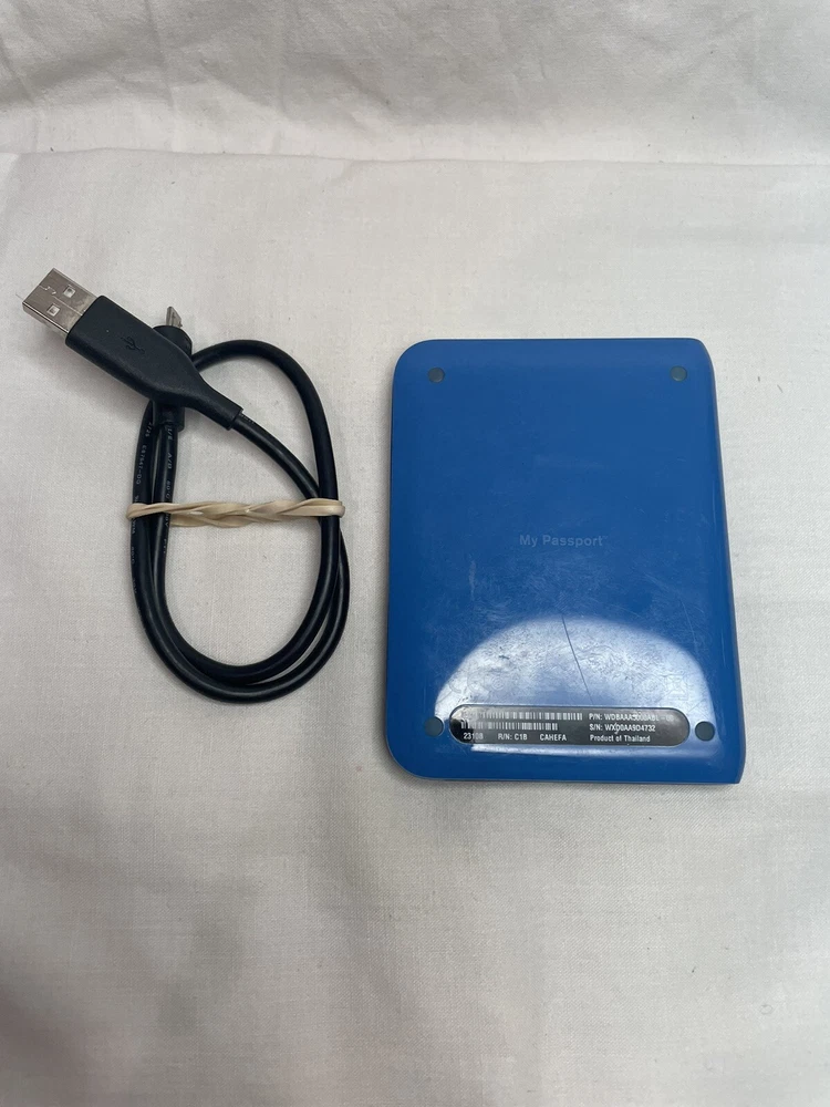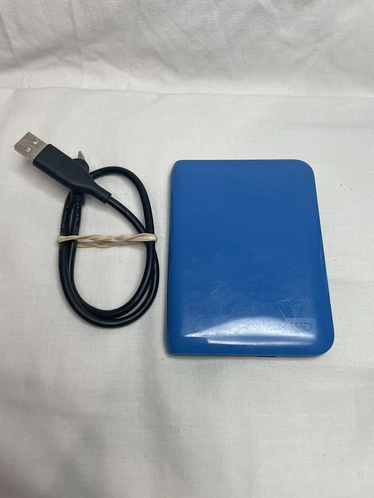 Used WD external hard drive. Works as it should. Has cosmetic scratches on the plastic case. Includes data cable - USB A 2.0 to micro B 2.0