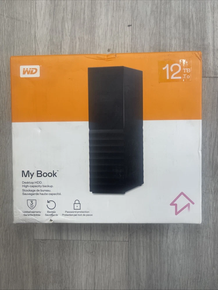 WESTERN DIGITAL (WD) 12TB My Book DESKTOP EXTERNAL Portable Hard Drive with 256-bit AES HARDWARE ENCRYPTION! RETAILS FOR $250.00+ ***********BRAND NEW, FACTORY-SEALED*********** FULL 3 YEAR MANUFACTURER'S WARRANTY INCLUDED! SUPER-FAST AND SAFE SHIPPING! WE USUALLY SHIP THE SAME DAY PAYMENT IS MADE! LOOK AT THE PHOTOS CONTAINED IN THE LISTING--WHAT YOU SEE IS WHAT YOU WILL ACTUALLY RECEIVE! NO GAMES, NO GIMMICKS, JUST THE REAL DEAL HERE! IF YOU HAVE LESS THAN 10 POSITIVE FEEDBACK ON YOUR eBAY ACCOUNT PLEASE DO NOT PLACE A BID WITHOUT MESSAGING US FIRST OR IT WILL BE CANCELED . SCAMMERS ARE NOT WELCOME HERE. CHECK OUT OUR PERFECT SELLER FEEDBACK & JOIN THE MANY REPEAT CUSTOMERS WE'VE DEVELOPED RELATIONSHIPS WITH! TRY US AND BECOME A CUSTOMER FOR LIFE! _______________________________________________________________________________ PLEASE BE ADVISED: The information and description of the item listed below is taken directly from the manufacturer's website. The seller is not responsible for any errors or omissions contained therein. If you have any questions or concerns about the features or specifications of this particular portable hard drive, please perform your own research into this particular model. The My Book 12TB external desktop hard drive is trusted desktop storage designed to complement your personal style with a massive amount of space to store your photos, videos, music, and documents. Equipped with high-security 256-bit AES hardware encryption and password protection. Along with the included perfectly paired backup software, My Book provides reliable digital storage helps keep your files safe and secure. My Book 12TB external desktop storage comes equipped with WD Backup software and Time Machine compatibility to help make sure your photos, videos, music and documents don’t get lost. You can set it to run automatically on your schedule. Just pick the time and frequency to back up important files from your system. With the power of WD Backup and Time Machine compatibility, you’ve got complete backup routine options to help recover data in the event of a computer virus, computer failure, or if you accidentally press “delete”. Includes auto backup software and Apple Time Machine compatibility 256-bit AES hardware encryption with password protection Includes SuperSpeed USB-A cable (5Gbps) Includes WD Discovery software for WD Security, Social Media and Cloud Storage import and WD Drive Utilities Includes AC Adapter Includes Quick Install guide The storage format is a combination of HDD and SSD, ensuring optimal performance while maintaining compact size (6.73" x 1.92" x 5.47") WD Model WDBBGB0120HBK-NEWM UPC 0718037901336 Compatible with Windows 10+ and MacOS 11+ (Please note: compatibility may vary depending on user's hardware configuration and operating system)