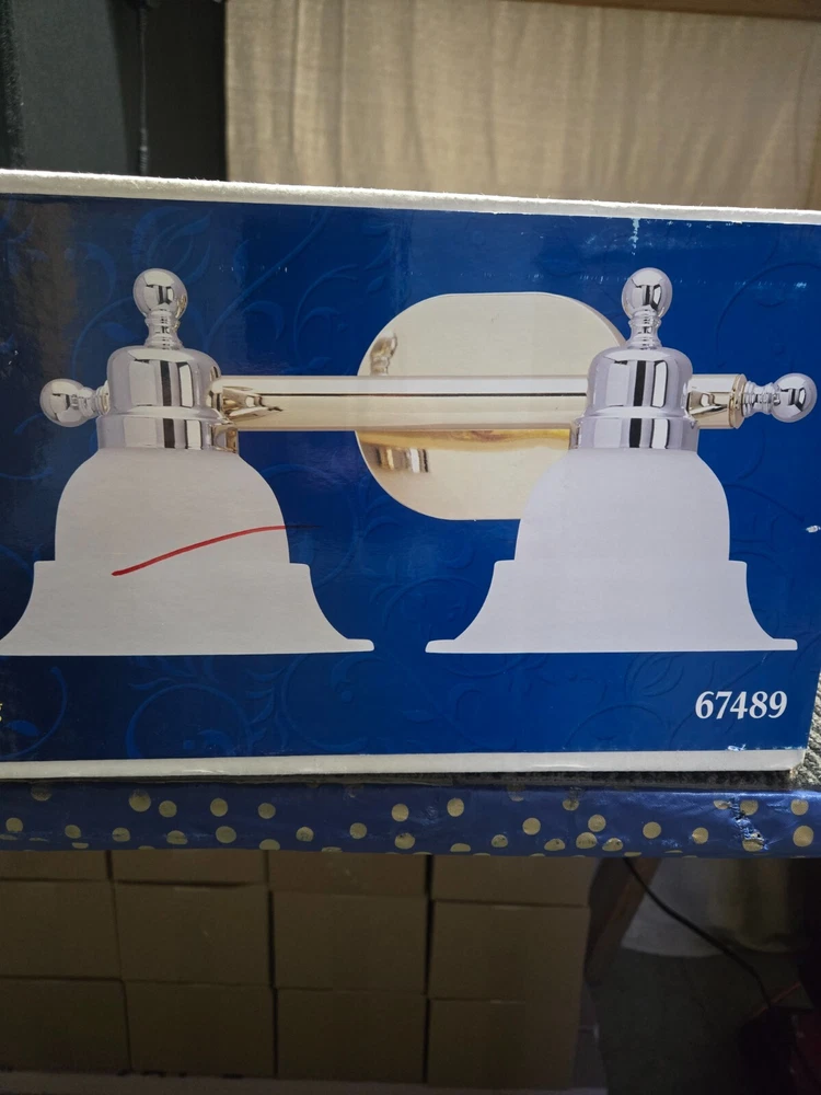 The Westinghouse Lighting Corp. 67489 Wall Bracket Decorative Lighting Fixture is a stylish vanity lighting option featuring a wall bracket design. Made with a combination of brass and chrome materials, this fixture exudes a modern and elegant look for any space. Perfect for adding a touch of sophistication to your bathroom or vanity area, this lighting fixture from Westinghouse Lighting Corp. is designed to enhance the ambiance of your room with its decorative appeal.