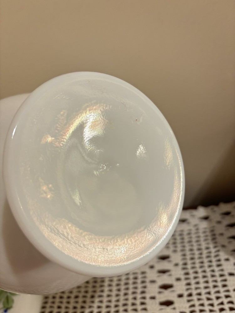 This beautiful candy dish is a vintage piece from Westmoreland, a well-known brand in glassware. The dish is made of white glass and features intricate hand-painted designs that make it a unique addition to any collection. It's perfect for storing candies, small treats, or even as a decorative piece. The dish is in excellent shape and ready to be displayed in your home. Good condition. No chips and crack. Please view all pictures for details.
