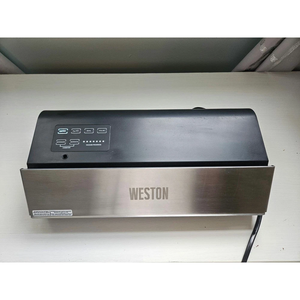 Weston 65-0501-W Professional Advantage Vacuum Sealer, 11" Does not come with bags. Did not try actually sealing a bag but it turns on and appears to run as it should. Minor cosmetic issues. Smoke free pet friendly
