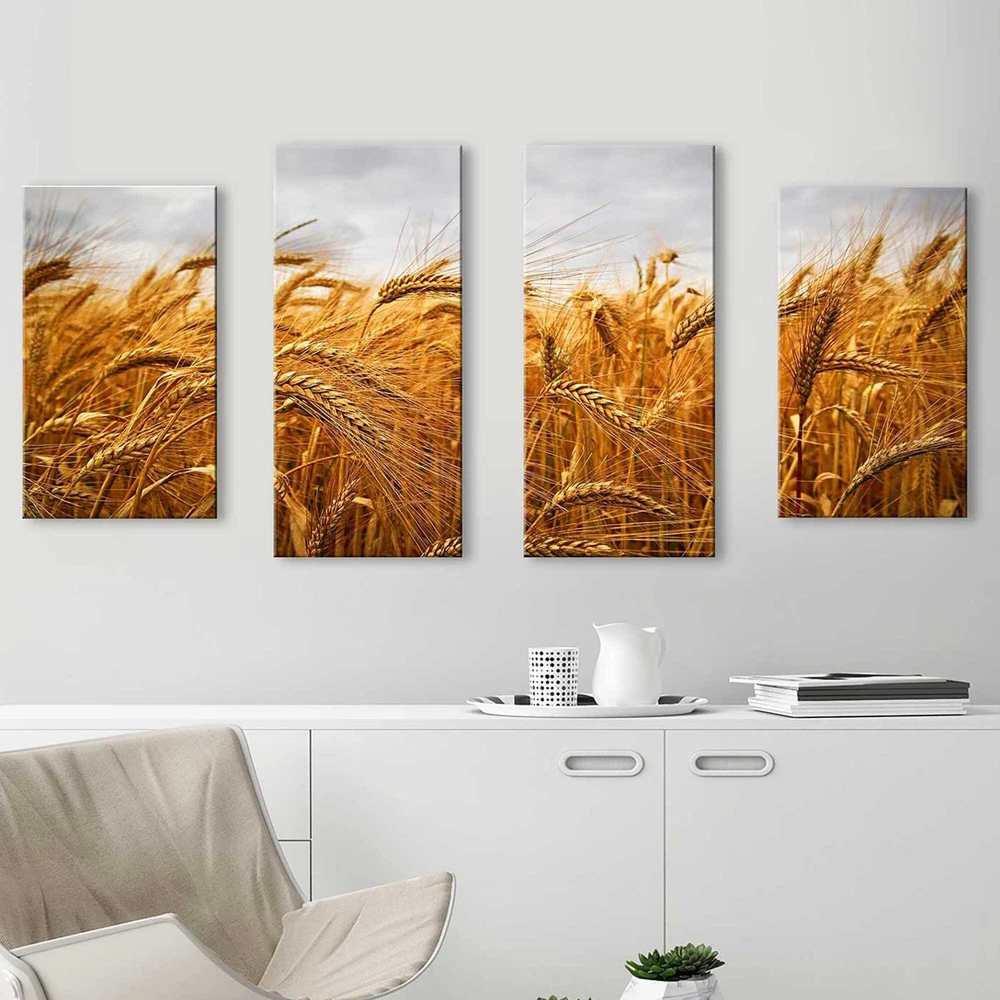 This Digital Photo Print is created whereby an image is digitally printed directly onto premium canvas using a large format printer. The Artwork is then beautifully mirrored around the edges and professionally hand-wrapped around sustainable polystyrene solid stretcher bars. This artwork has been reproduced from the artists' original piece with written permission. This product will be custom built for you. Please allow 10 business days for the product to leave our warehouse.100% Proudly Made in North America & Arrives Ready-to-HangPlease note this is a digital print with no embellishmentsCare: Wipe with dry cloth only Free Shipping Over $49.99* Details "Wheat" by Elena Elisseeva Print on Canvas Set of 4 Product Description: This Digital Photo Print is created whereby an image is digitally printed directly onto premium canvas using a large format printer. The Artwork is then beautifully mirrored around the edges and professionally hand-wrapped around sustainable polystyrene solid stretcher bars. This artwork has been reproduced from the artists' original piece with written permission. This product will be custom built for you. Please allow 10 business days for the product to leave our warehouse. 100% Proudly Made in North America & Arrives Ready-to-Hang Please note this is a digital print with no embellishments CareWipe with dry cloth only