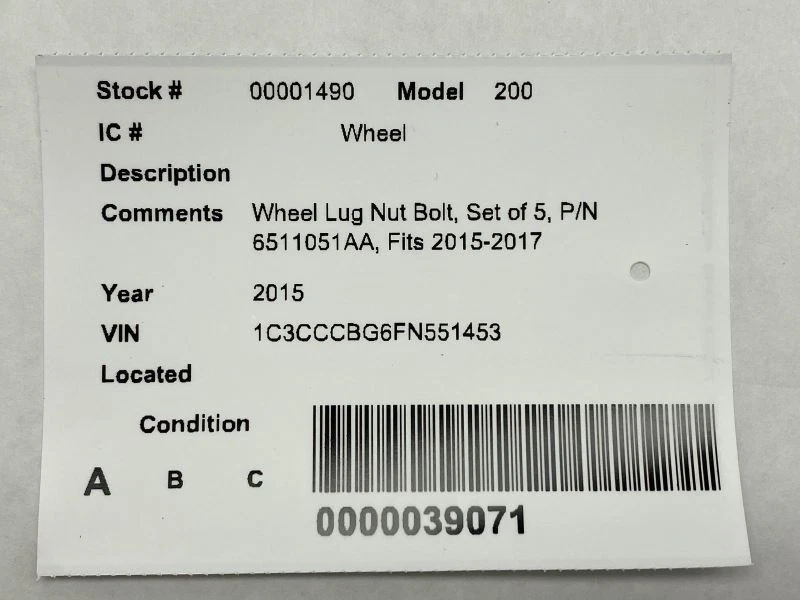 Hollander Welcome to our eBay store! Wheel Lug Nut Bolt Set of 5 6511051AA Fits 2015-2017 Chrysler 200 81536 Description This listing is for a used Set of 5 Lug Nuts. The part pictured is the actual item you will receive, no other parts are included. This part is used so normal wear is to be expected. Please see part fitment information below and please match part numbers before buying this item. If you have any questions please let us know. Donor Vehicle Model : 200 Year : 2015 Mileage : 55000 (0 = not available or unknown) Stock Number : 001490 Notes : WHEEL LUG NUT BOLT, SET OF 5, P N 65 12125 This Part Will Fit These Makes And Models With These Options About Us Payment Shipping Returns Warranty About Us Please contact us with any questions BEFORE purchasing. If you are unsure if this part will fit we are happy to verify fitment for you prior to purchase via your vehicle's VIN (Vehicle Identification Number). We try to answer all messages in 24 hours. Please note that orders are sent to the shipping department throughout the day therefore we cannot guarantee adjustments to orders after payment is received. Our hours of operation are: Monday - Friday 8:00AM - 5:00 PM CST Saturday - Sunday Closed Payment All orders must be paid in full prior to shipment. Payments are processed through eBay. We accept credit card and cash for Local Pickup orders. If payment is not received, an Unpaid Item case will be opened for the sake of seller fee reimbursement. Sales tax will be collected by eBay where applicable. Shipping We ship items via UPS, USPS, or LTL Freight Carriers. Tracking information is uploaded to the order once the item is shipped. Larger items such as Engines, Transmissions, Doors, Tailgates, Trunk Lids, Rear Axles etc. will ship via freight. Freight items are unable to be shipped until we have all the necessary information required by the carrier. Typically that includes a valid business name, address, valid phone number, and hours of operation. Be sure to provide us with all necessary contact information with your order as well. Freight charges are for zoned commercial addresses with a forklift or loading dock. If the location requires the assistance of a lift gate there will be an additonal fee. If a commercial address is not able to be provided we can ship the item to your residence for an additional fee. Add $100 for Residential delivery Add $85 for Liftgate delivery Most orders are shipped within one business day. If there is an issue with your order or item we will reach out to you before we ship the order. Once payment is received for a freight item we will send a message asking for additional information needed for the freight carrier. Without this information we will not be able to ship your item. If a USPS or UPS item is damaged during shipping please keep all packaging and loose parts complete with the package. Send us a message through Ebay with some pictures and your invoice number. We will work on getting a replacement item to you while handling the UPS claim as well. Please Inspect all freight shipments before signing for them at time of delivery! If there has been any damage to the item during shipping inspect the item to see if you can still use it or not. If you can still use the item, notate the damage on the delivery ticket that the driver is keeping then hand it back to them. Send us a message with a copy of your receipt and the delivery ticket you kept. We will take care of the damage claim with the freight carrier. If you cannot use the product simply decline the shipment send us a message and we will work on getting a replacement or refund to you. It is very important to not sign for any damaged product without notating it on the delivery ticket or denying the shipment. You have the right to inspect the package for obvious signs of damage prior to signing and accepting the delivery. If a delivery driver is refusing to let you inspect the shipment before you sign for it, do not sign, refuse the shipment and contact us through eBay messaging. When you sign for the delivery on the carrier's Bill Of Lading (BOL) it is accepting the merchandise as is and in good order. So please inspect your package before signing for it. We do understand that sometimes there will be damage that is missed, don’t worry we will still be able to help you. If you do find concealed damage after you sign for the package let us know through messages and send some pictures as well. We will get with the freight company and start a claim. We are not responsible for any delays incurred by the shipping company. No International shipping is available outside of the eBay Global Shipping program. We do not ship to PO Boxes, Hawaii, Alaska, Puerto Rico, APO, FPO, AA, AE, AP and U.S. Territories outside of the continental U.S. International orders are shipped via eBay’s Global Shipping Program. Customer pickup at our location is also available. Please contact us prior to your purchase to arrange pick up. Returns If you need to return an item for any reason please contact us first to obtain a RMA number (Return Material Authorization). All returns must be authorized by us before being shipped back. Any items returned must include an RMA number clearly written on the side of the packaging. If you are returning a part because you bought the wrong one or no longer need it the original shipping charges are not refunded and you are responsible for the return shipping. All returns must be made within 30 days of the date of purchase. All parts must be returned in their original condition to receive full credit Once you obtain an RMA number, ship the item back to: Frontier Auto Parts, 2199 Ranger Hwy, Weatherford, TX 76088 Warranty All parts we sell through eBay Motors come with a 30-day warranty and a 30 day return period unless otherwise stated. No labor warranty is provided. In the event a part sold with a warranty fails to operate within the warranty period we will replace the part(s) with a functi