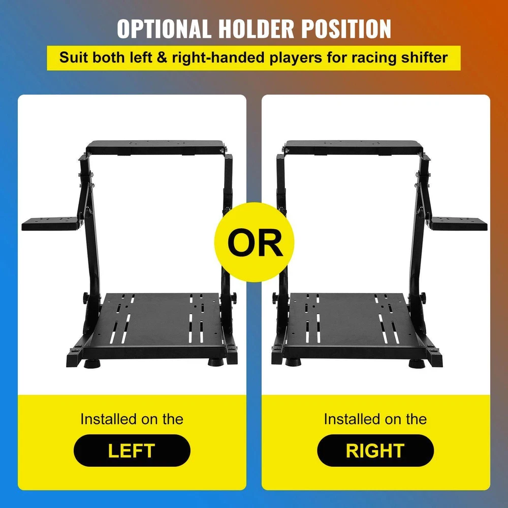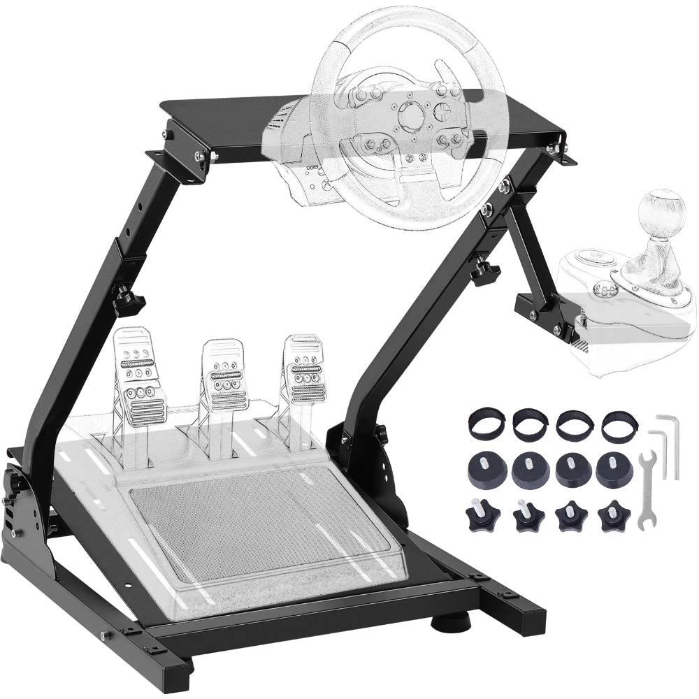 Default:Default This universally designed sim cockpit is compatible with, Fanatec, Thrustmaster, CSR wheels, pedals, and shifters. The cockpit allows players of different heights to use, featuring a sturdy carbon steel structure and entirely adjustment. As a result, you can enjoy a more comfortable and flexible game experience. It also can be folded for space-saving storage. The wheel, shifter, and pedals are NOT included. High Compatibility Fully Adjustable Durable Wheel Stand Foldable & Compact Optional Holder Position is a leading brand that specializes in equipment and tools. Along with thousands of motivated employees, is dedicated to providing our customers with equipment & tools at incredibly low prices. Today, has occupied markets of more than 200 countries with 10 million plus global members. Why Choose ? Premium Quality Incredibly Low Prices Fast & Secure Delivery 30-Day Free Returns 24/7 Attentive Service Wide Compatibility This wheel stand is compatible with G25, G27, G29, G920, Thrustmaster, Fanatec, and CSR pedals on the market with pre-drilled holes. Other wheels also can be clamped on the holder. Flexible Height & Angle The steering wheel stand is adjustable in angle, tilt, and height (27"-31.5"/68.5-80 cm), allowing players of different sizes to use it. In addition, you can tune your wheel and pedal to any ergonomic position. Sturdy Carbon Steel Our wheel stand is made of solid carbon steel, with maximum durability to prevent falling off. Besides, its sturdy frame gives you a reliable game experience in-lasting use. Folding in Seconds This wheel stand folds up fast and reduces to a small size without disassembling the device. Its foldable and compact design is convenient for you to put under the sofa or in the corner. Optional Shifter Mounting The gear shifter holder on the gaming wheel stand can be flexibly mounted on either side. So whether you drive left or right, you can use our bracket to enjoy sim games. Non-Skid Rubber Pads There are four non-skid rubber pads at the simulator cockpit's bottom, holding the floor firmly and keeping the bracket stable. So you never need to worry about the damage to the floor. Specifications Model: G920ZDJ Material: Carbon Steel Adjustable Height: 27"-31.5"/68.5-80 cm Base Size (L x W): 18.9" x 22.6"/48 x 57.5 cm Wheel Holder Size (L x W): 16.5" x 5.9"/42 x 15 cm Shifter Holder Size (L x W): 6.3" x 4.7"/16 x 12 cm Folding Size (L x W x H): 18.9" x 30.3" x 7.5"/48 x 77 x 19 cm Product Weight: 24.9 lbs/ 11.3 kg Compatible Model Thrustmaster T300RS, TX F458, T500RS, T3PA /GT) pedals Fanatec Clubsport & CSR pedals Package Content 1 x Steering Wheel Stand 4 x Rubber Pads 4 x Hand Knob Tightening Screws 4 x Straps 1 x Open-Ended Spanner 2 x Allen Wrenches 1 x Screws Kit