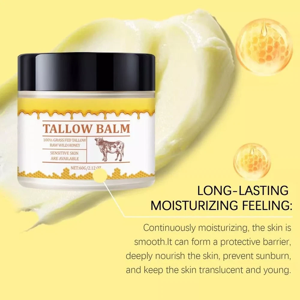 Whipped Beef Tallow and Honey Balm 2oz Features 1. Face essence cream body cream, our butter and honey moisturizer are sent to light air texture, which makes people feel extremely satisfied when applied to the skin. 2. Moisturizing agent: Our beef fat cream is rich in moisturizing ingredients such as vitamin D, E, choline, and fatty acids, which can nourish the skin more than any chemical cocktail on the market. This face cream can be used as a facial moisturizer, body lotion or lipstick. 3. The best choice for sensitive skin: If you have sensitive skin, dry skin, eczema or rosacea, this product is tailor-made for you! We intentionally added zero essential oils or spices. 4. High quality ingredients: We only use the highest quality ingredients: grass fed butter, manuka honey, organic cold pressed olive oil, potted marigolds. Specification Material: Water Color: Brown Size: 5 x 5 cm Weight: 60 g Package Include: 1x Whipped Beef Tallow and Manuka Honey Balm Note: This Product is designed to deliver optimal results, offering high-quality performance and satisfaction. Please note that individual experiences and outcomes may vary based on personal use, preferences, and unique circumstances. For best results, we recommend following the provided guidelines and ensuring the product is used as intended. Product result may vary for every individual. NOTE Hello Buyer, Thank you for your interest in our product! Please note that I am a reseller, and your order will be shipped directly from our nearest warehouse to your address. If you have any questions or need assistance, feel free to reach out.