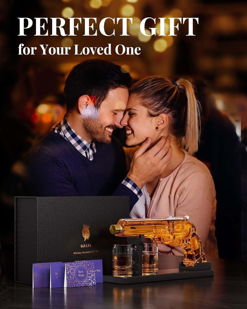 Whiskey Decanter Gift Set for Men - Unique Gun Design - Perfect for Any Occasion ‹ › ‹ › ‹ › ‹ › ‹ › ‹ › ‹ › ‹ › ‹ › ‹ › Whiskey Decanter Gift Set for Men Unique Gun Design - Perfect for Any Occasion Enhance The Flavor Crafted from lead-free glass, this exquisite whiskey decanter is designed to preserve and amplify the flavor of your favorite spirits, including whiskey, rum, bourbon, vodka, and tequila. Experience a smoother sipping journey that encapsulates quality and sophistication, making it an essential investment for every true whiskey aficionado. Extraordinary Gift Choice Searching for a gift that leaves a lasting impression? Look no further! This unique pistol-themed whiskey decanter set not only enhances the taste of spirits but also captivates with its standout design. Beautifully packaged in an elegant gift box, it’s the perfect present for a father, husband, brother, or even a respected boss, making every occasion special. Exquisite Design Featuring a striking gun-shaped decanter paired with a handcrafted wooden display stand, this set adds harmony and visual appeal to any shelf or bar. The intricately designed decanter becomes more than just a vessel; it's a statement piece, bringing a touch of elegance to your sipping rituals. Hand-Made Durable Glass Each liquor gun decanter is lovingly blown by skilled artisans, resulting in a stunning display of clarity and durability. With an emphasis on health, our 100% lead-free glass design ensures that your favorite spirits are safely stored and beautifully presented. Perfect Capacity This stylish revolver whiskey decanter gift set includes two 2oz (60ml) cylinder-shaped glasses and a striking decanter boasting a 7.77oz (230ml) capacity. Whether you're entertaining guests or indulging in a quiet moment, this set delivers unmatched style and functionality. The Classy Spirit Decanter for Every Whiskey Lover Embrace elegance and character with this charismatic whiskey decanter gift set, an ideal addition for connoisseurs and collectors alike. Elevate your drinking experience today. Shipping Free & Fast Shipping - We offer free shipping to most of the USA with a normal delivery time of 3-7 days. However, due to the current situation, additional delivery time (up to 3 weeks) may be required for some items. Alternative Carriers - We may use alternative carriers (e.g. USPS, FedEx, UPS, etc.) to ensure your package arrives safely and on time. Due to the use of multiple carriers, we are unable to provide a tracking number automatically. Handling Time - Orders are processed and shipped within 1-2 business days of receiving cleared payment. Shipping Restrictions - Shipping to Alaska, Hawaii, Puerto Rico, Guam, and other US territories may incur shipping charges or delivery restrictions. Please contact us before ordering, or your order can be refunded/cancelled. State Restrictions - There may be restrictions based on your state of purchase. For example, certain items may not be shipped to California due to state regulations. Contact for Tracking Updates - If you require tracking updates or have any concerns about the delivery of your order, please feel free to contact us, and we will be happy to assist you. Return 30-Day Hassle-Free Returns - We want you to be completely satisfied with your purchase. If you are not, you can return the item within 30 days of receiving it for a full refund or exchange. Easy Return Process - To start a return, simply contact us and we will provide you with a prepaid return shipping label and detailed instructions. Restocking Fee - There are no restocking fees for returns. However, the buyer is responsible for return shipping costs if the return is not due to a seller's error. Refund Processing Time - Refunds will be processed within 5 business days of receiving the returned item in its condition. Payment We accept all major credit cards, PayPal, and Apple Pay for your convenience. Your payment information is secure and encrypted to ensure a safe and seamless transaction. Please complete your payment within 3 days of purchase to avoid any delays in shipping. Feedback Your feedback is extremely important to us. We strive to provide the best products and customer service possible. If you are satisfied with your purchase, please take a moment to leave us a positive review. If you have any concerns or issues with your order, please contact us before leaving negative feedback. We are committed to resolving any problems and ensuring your satisfaction. Contact Us If you have any questions or concerns, please feel free to out to our customer support team. You can contact us through the eBay messaging system. We are available Monday to Friday, 9:00 am to 5:00 pm EST, and we will do our best to respond to your inquiry within 24 hours. Buy it now and enjoy a pleasant shopping experience! Unit Quantity: 1 Set Includes: Decanter,1 x 7.8oz whiskey decanter,1 x spade shaped wooden display stand,1 x exquisite gift box Material: Glass,Wood Features: With Lid/Stopper,Unique Birthday Gifts for Men Dad,Whiskey Decanter Set for Men,For Whiskey,For Liquor,For Tequila,For Bourbon,For Vodka Type: Decanter Set Color: Clear Number of Items in Set: 4 Capacity: 230 ml Style: Military Item Depth: 2.95 in Item Height: 5.51 Inches Item Weight: 1 lb Unit Type: lb