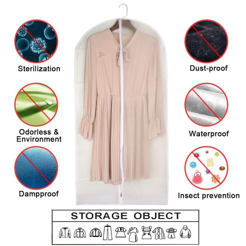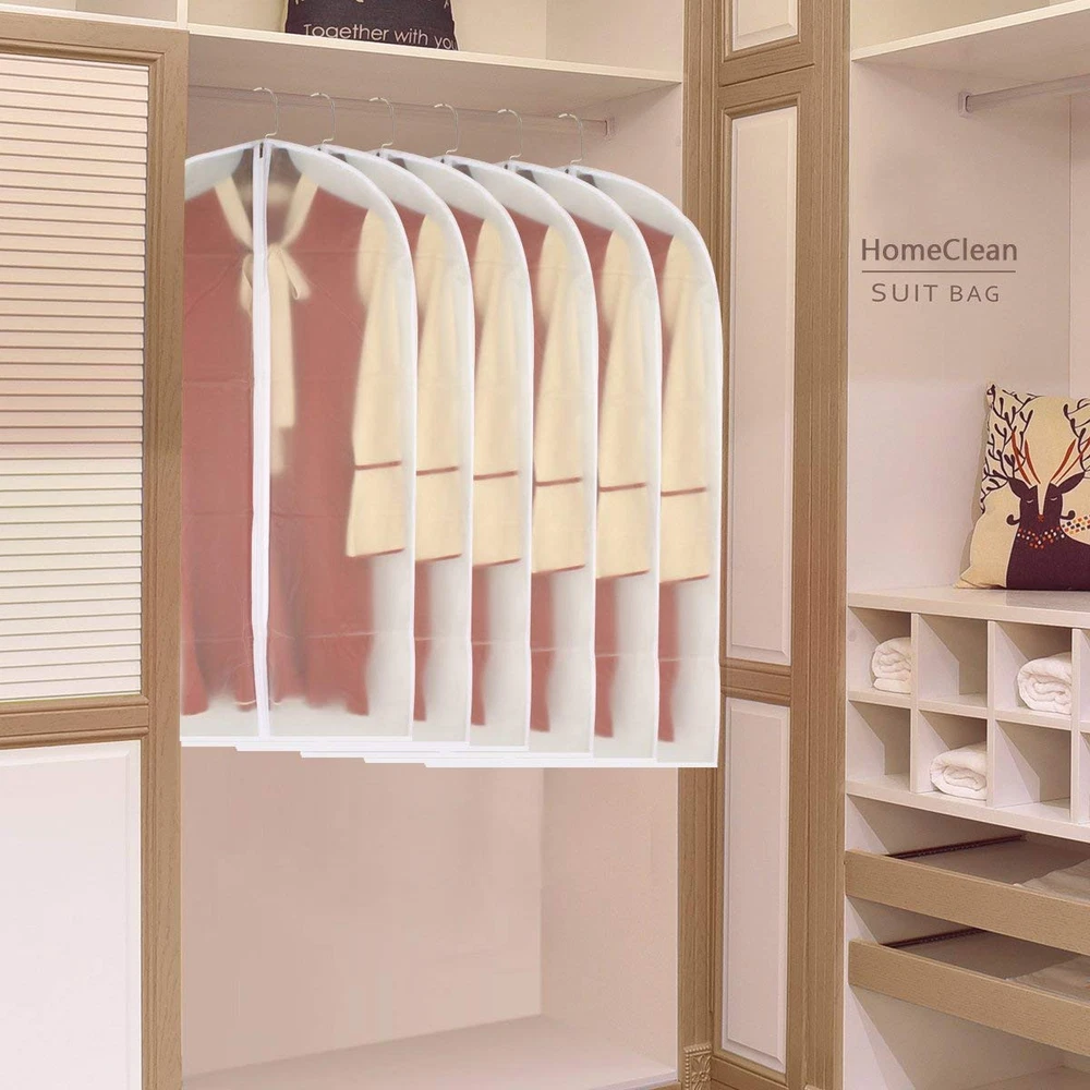 🎅PEVA 🎅DURABLE & LONG-LASTING:Made of soft and durable PE material with a thickness of 50gsm, This upgraded version clear garment bags for storage is washable, lightweight and built to last. Dustproof and water-resistant plastic garment bags protect your delicate clothes against dampness, dust, pet hair, and keep them fresh and wrinkle free! 🎅HIGH-QUALITY UPGRADED 5# ZIPPERS:You may suffer a traumatic experience on the broken or slip off zipper, but no more with our hanging garment bag. We chose 5# zippers with superior quality to ensure smooth and flawless zipping experience and a longer service life. 🎅EXCELLENT COST EFFICTIENCY: You will receive 6 pcs of peva garment bags with a size of 24*40 inch. These suit bags for closet storage are washable and thus you can easily clean them and reuse them for a long period of time. 🎅ADVANCED DESIGN:The clear design of small garment bags for hanging clothes eliminates the guess work of trying to figure out what’s inside! Each suit protector garment bags is 40 inch in length and 24 inch in width, making it perfect for storing small shirt, faux fur coat, T-shirts, winter sweater, short jacket, uniforms, winter coat, pure silk clothes etc. 🎅RISK-FREE PURCHASE: hanging clothes cover for men and women is the best solution for your problems! At , it is our ultimate goal to provide our customers with the best-quality products and service, so if you have any question about the product, please don’t hesitate to turn to us, we are always ready to help you!