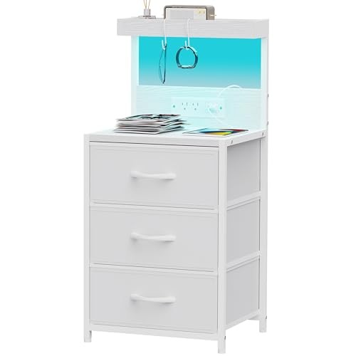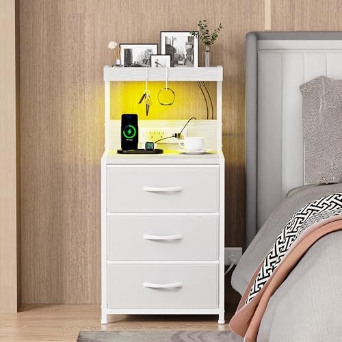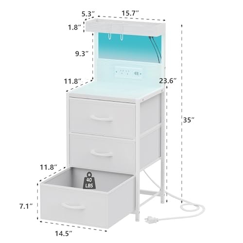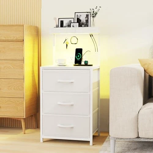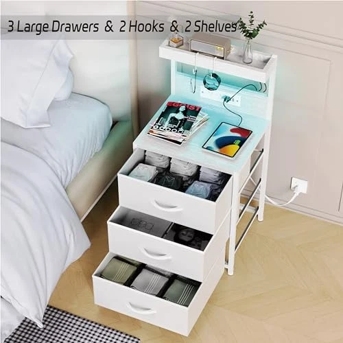 Return Policy Fast Delivery Trusted seller Nightstand, Dresser Nightstand with Charging Station and Lights, 3 Drawers Night Stand with Storage Shelf and Hooks, Tall End Side Table for Bedroom, Modern White Product Description Type C Charging Station: The upgraded charging station includes 1 USB-C port, 2 USB-A ports, and 2 standard power outlets. With an extension cord, charging is a breeze. You can charge your phone, tablet, laptop, and beauty devices any time and anyw at home Sturdy Fabric Drawers: The night stand has three storage drawers made of thick fabric. They are a great combination of practicality and aesthetics. With a weight capacity of up to 20 lbs and ample space, these drawers can easily accommodate multiple standard photo albums or stacks of clothing Colorful LED Light: This RGB light strip has 20 static colors, 20+ dynamic modes, and a music mode. It would be a large bonus for your room setting. You can freely change the brightness and color temperature by using either the phone app or the key. Play music and enjoy a fabulous light show with our mesmerizing LED end table Various Storage Choice: The small storage box on the top offers extra space for photos, cosmetic products, and cute home décor. The bedside table comes with 2 hooks for hanging keys, headphones, jewelry, and ornaments. Tidy up your room with our functional night table High Quality & Easy Assembly: The table's sturdy metal tube and engineered wood ensure stability and longevity. The package includes step-by-step instructions, numbered parts, and portable tools. Assembly is super easy, even for newbies. Feel free to reach us if you have any questions Shipping Returns Payment Shipping Shipping is FREE to all addresses other than APO/PO boxes in the lower 48 states. All our stock ships from US-based warehouses. Shipped via USPS or UPS (depending on location and package weight) Unless stated otherwise, all orders will ship within 24-72 hours of your payment being processed. Check our feedback to see the great reviews of FAST shipping we offer. Returns Seller does not accept returns Payment We currently accept payment via eBay managed payments only. Once payment is cleared, we will dispatch your shipment within 1-3 business days. Please refer to the "Shipping" tab for more information regarding shipping speed to your destination.