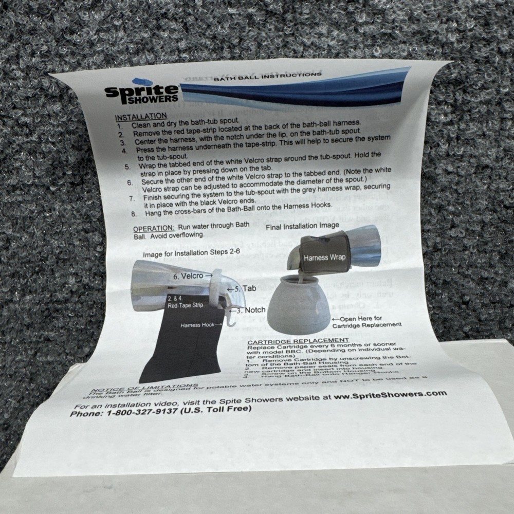 The BB-WH Sprite Filtered Bath Ball in white is a shower and bath filter that attaches easily to any bath faucet. It has a filter life of 12 months and is designed for use in the kitchen. Made in the United States, this bath ball is compatible with Sprite models and offers 12 months of cartridge life.