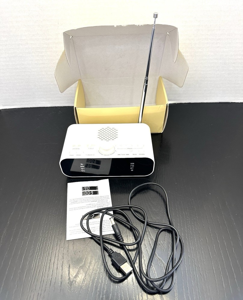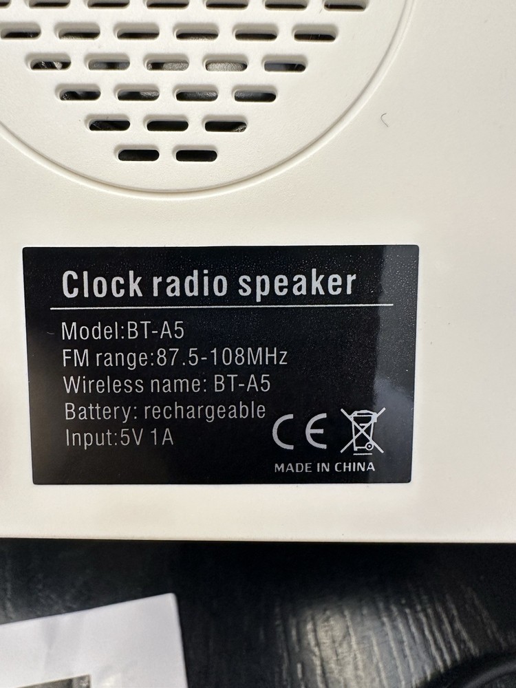 Clock Radio With Wireless Speaker Model BT-A5 , White, USB U-Disk/FM/BT Speaker/Clock/Alarm New open box