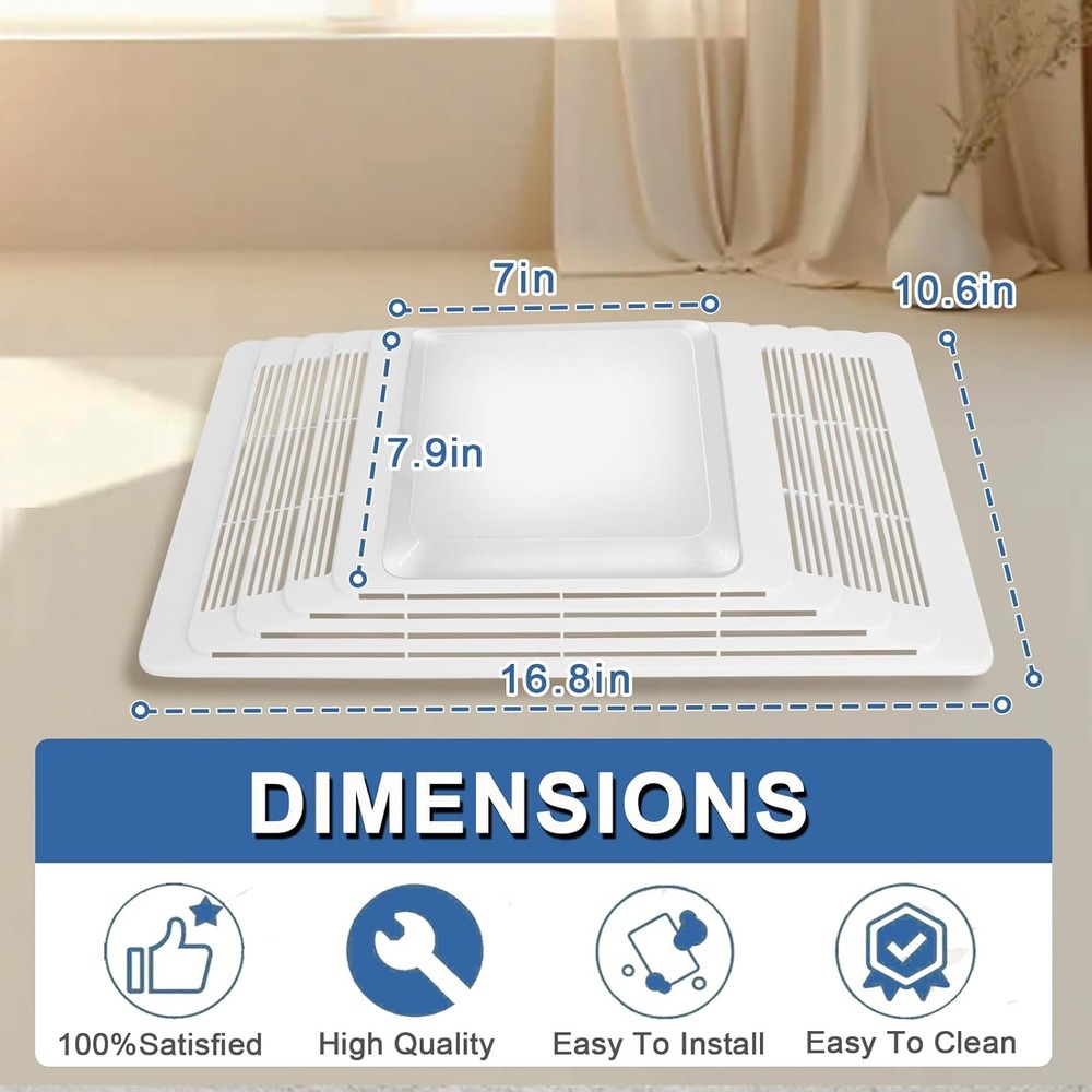 S97013662 Bathroom Fan Cover Grille and Lens Assembly Kit Compatible White Description Features: [ ]: Enhance your bathroom experience with our new fan cover lens kit and say goodbye to yellowed, dull, and tattered old bathroom exhaust fan covers. The brighter light creates a more welcoming atmosphere and gives your bathroom a fresh new look [ ]: The new exhaust fan cover helps to improve airflow and function of the bathroom Ventilation, maximizing air circulation and ensuring effective ventilation without having to replace the entire bathroom exhaust fan [ ]: This bathroom fan cover kit is made of high quality antioxidant material , which will not oxidize and yellow easily, and can withstand the high humidity environment in the bathroom to ensure that it provides long-lasting performance [ ]:The exhaust grille measures 16-3/4 inches X 10-5/8 inches and the lens measures 8 inches X 6- 15/16 inches for a perfect fit and improved appearance of your bathroom fan. Kit includes a grille and a lens, but does not include springs [ ]: Easily replace your old grille without professional help. Installation steps: 1. Remove the existing grille and lens; 2. Remove the bulb and reflector; 3. Place the new grille (without lens) on the ceiling. Then reinstall the reflector and secure with nuts; 4. Install the lens Product Details: Manufacturer: Zejoot Part Number: S97013662 Bathroom Fan Cover Grille Item Weight: 1.18 pounds Product Dimensions: 17.52 x 11 x 2.44 inches Country of Origin: China Item model number: S97013662 Bathroom Fan Cover Grille Color: White Material: Plastic Item Package Quantity: 1 Included Components: S97013662 Bathroom Fan Cover Grille Handling We will ship all orders within 3 business day of payment. Delivery We Do Not Ship Outside of the Continental US. Return Policy All items qualify for returns within 30 days of receipt. Buyer is responsible for return shipping on any item that is not damaged. Feedback We take our reputation seriously, we buy and sell online, so we understand the value of trust. If you are unsatisfied with your order, please contact us and we will work with you to resolve it to your satisfaction.