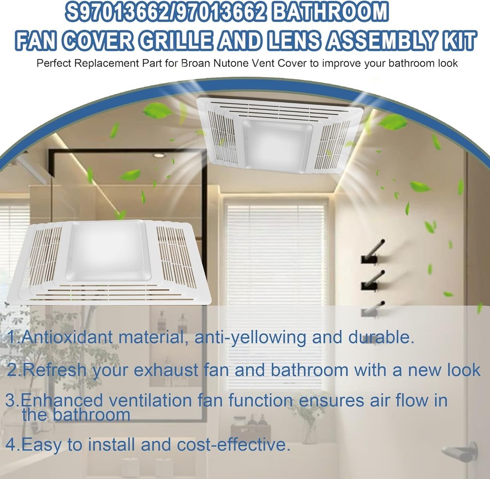 S97013662 Bathroom Fan Cover Grille and Lens Assembly Kit Fits For white
