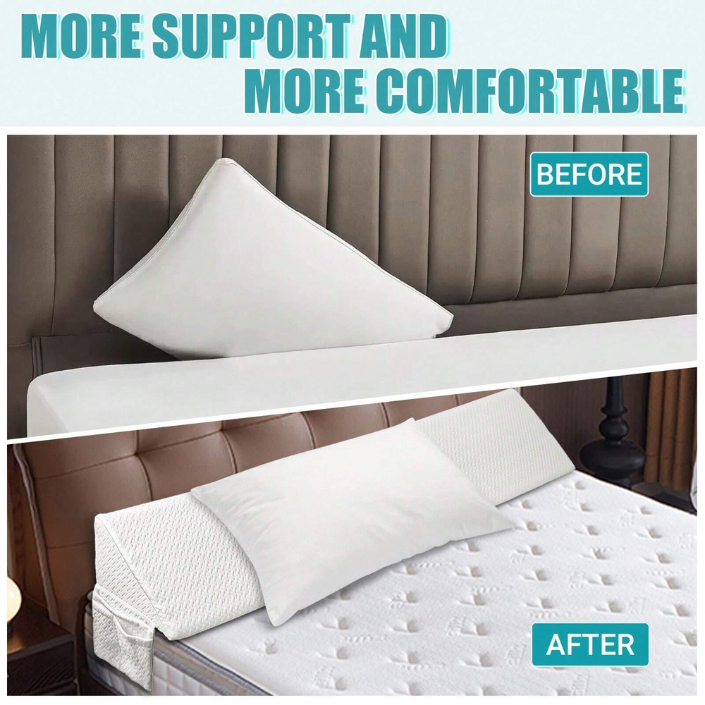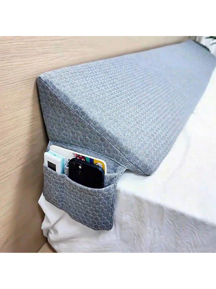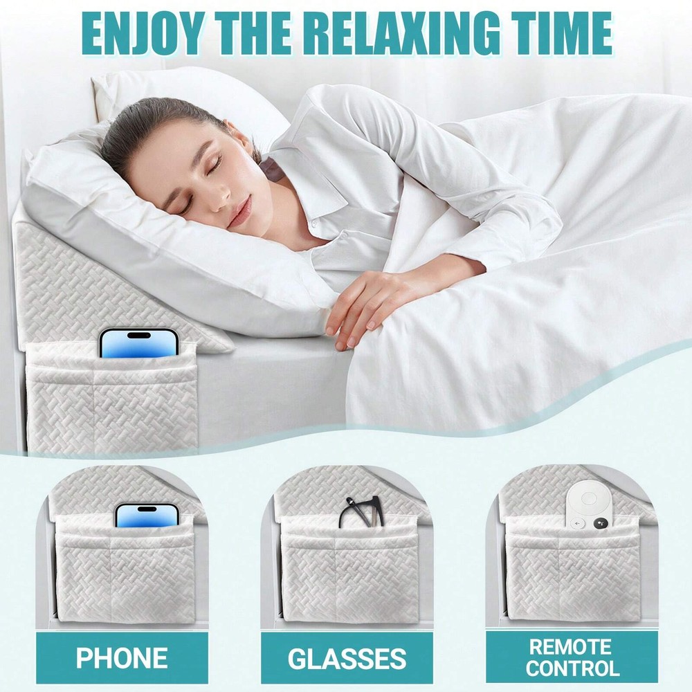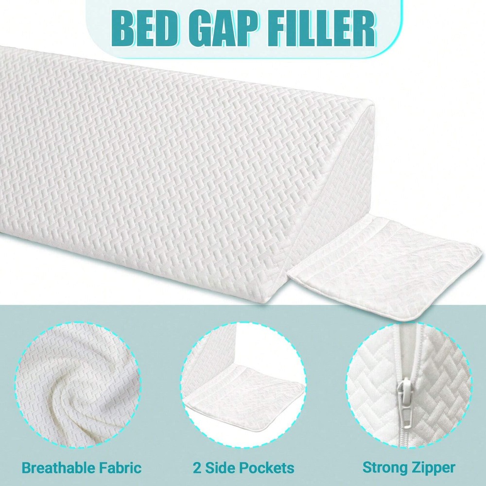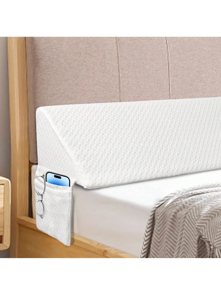 1pc White Bed Wedge Pillow For Headboard Gap Filler (0-8") - Removable Machine-Washable Cover, Foam-Filled, Textured Woven Design With Side Pocket For Phone & Glasses, Perfect For Mattress And Headboard Gap, Bedroom Accessory | Simple White Pillow | Woven Polyester Cover, Pillows For Bed